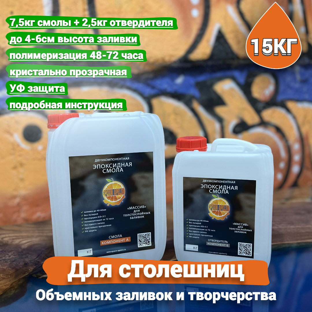 Эпоксидная смола 15кг для столешниц и объемных заливок Epoxin Apelsin Массив интересное: