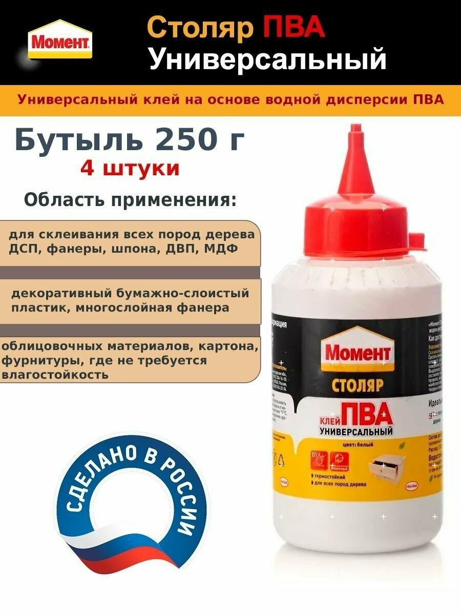 Момент Клей ПВА универсальный "Столяр" 250 г интересное: