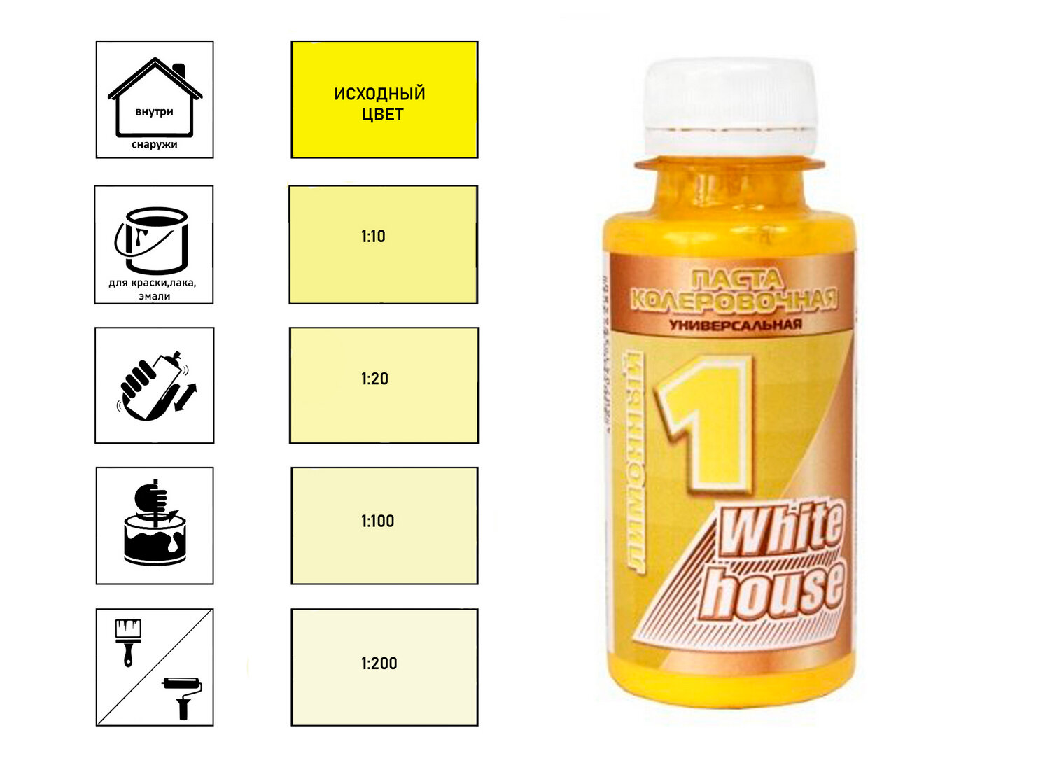 Колеровочная паста WHITE HOUSE, универсальная, лимонная, 100 мл
