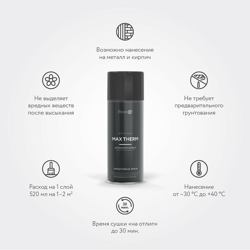 Краска аэрозольная Elcon Max Therm Черная (до 1000С) для мангалов, быстросохнущая, термостойкая, аэрозоль 520 мл
