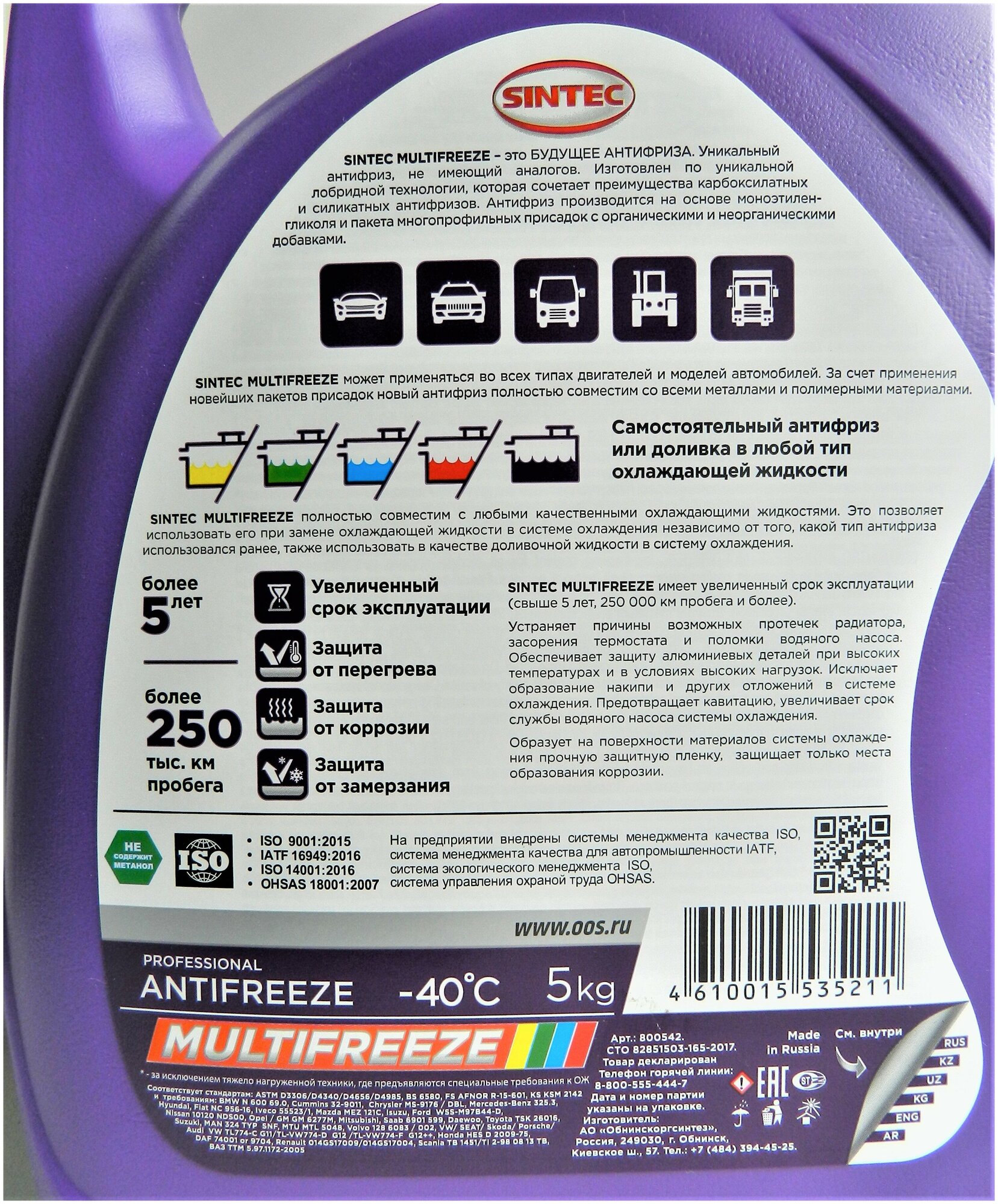антифриз sintec multi freeze violet 5 кг акция 5 кг по цене 4 кг