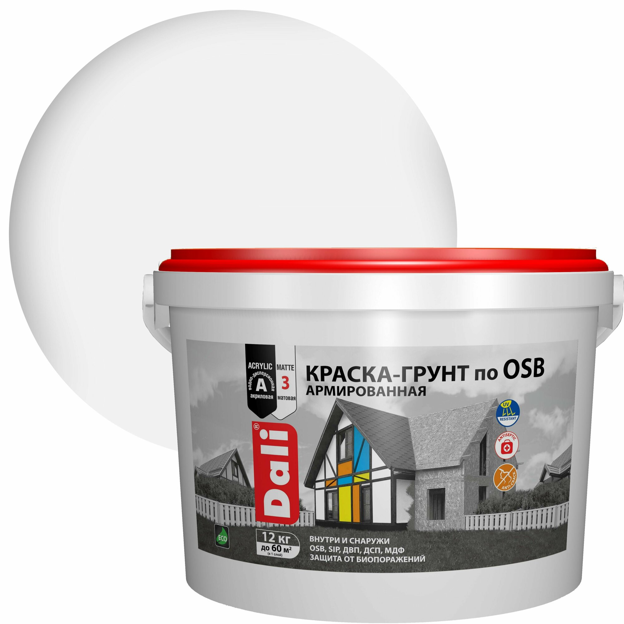 Купить Краска-грунт по OSB Dali, армированная, матовая, база A, белая, 12 кг