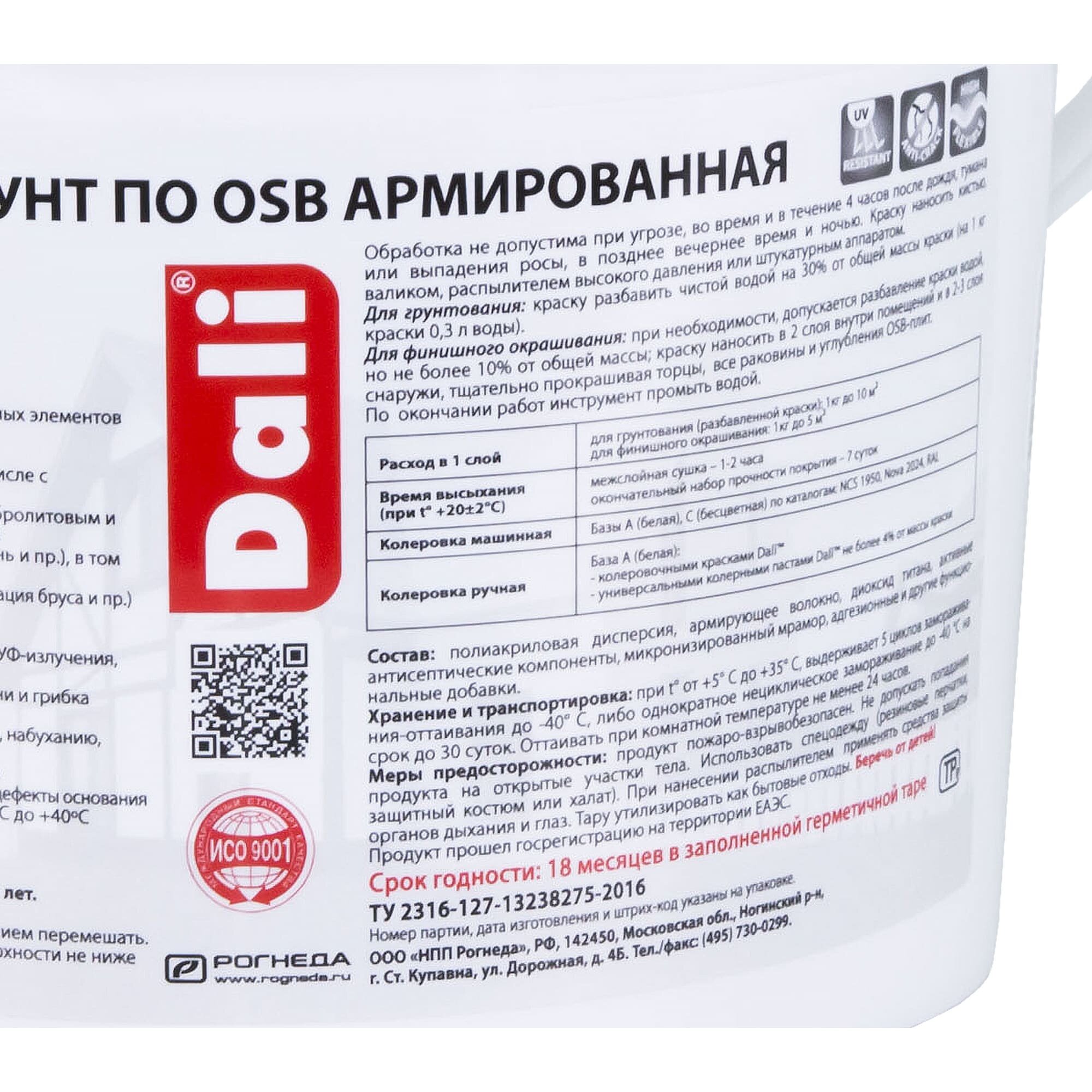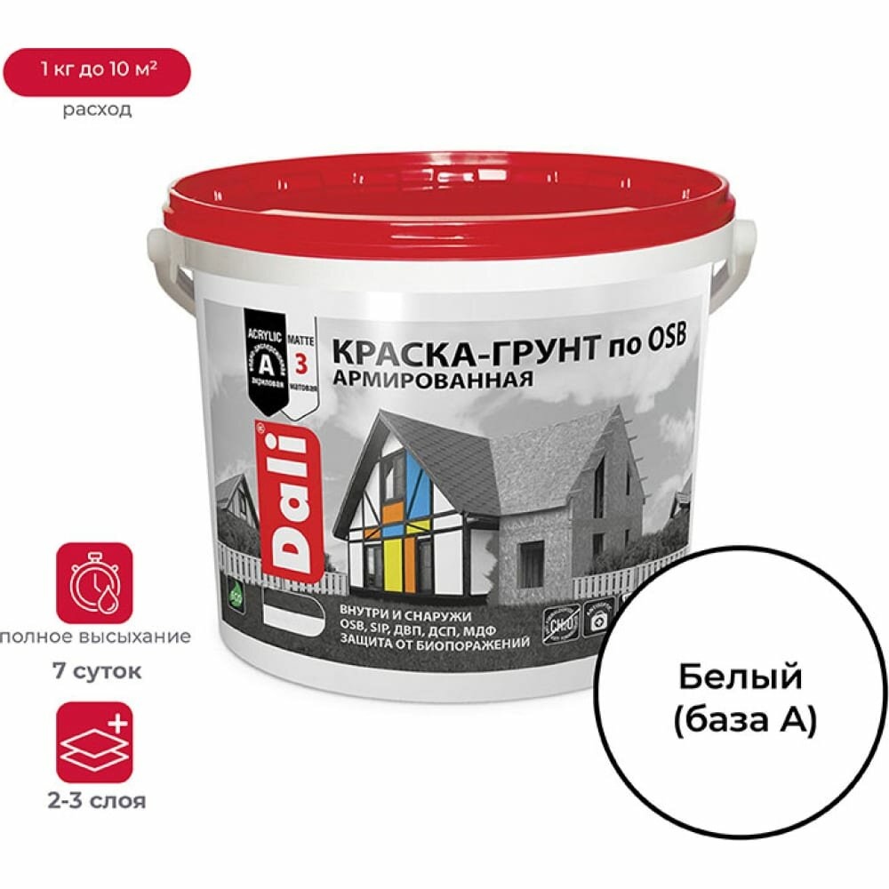 Краска-грунт по OSB Dali , армированная, матовая, база A, белая, 3 кг