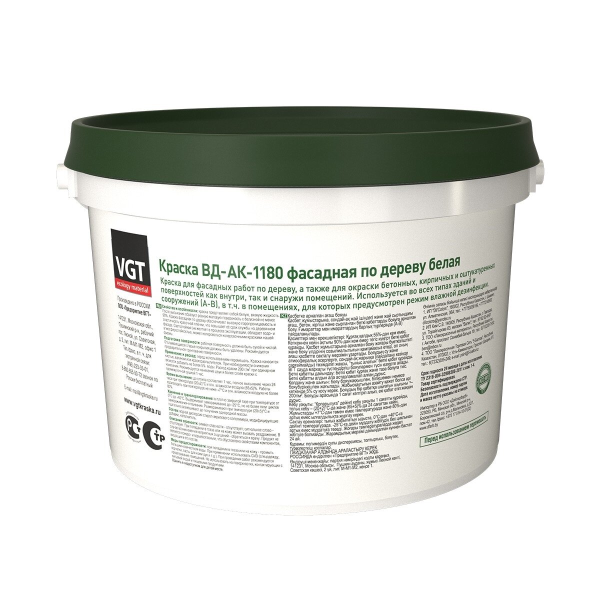Краска акриловая VGT ВД-АК-1180 Фасадная по дереву влагостойкая 3кг Белая / ВГТ по Дереву*