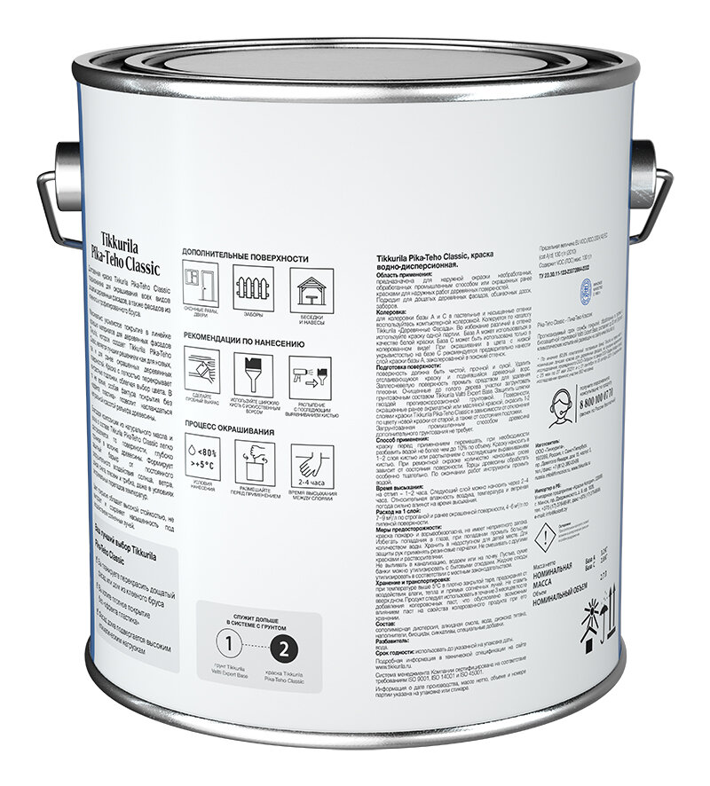 TIKKURILA PIKA TEHO CLASSIC / Тиккурила Пика-техо Классик краска акрилатная для деревянных фасадов матовая База А 9л