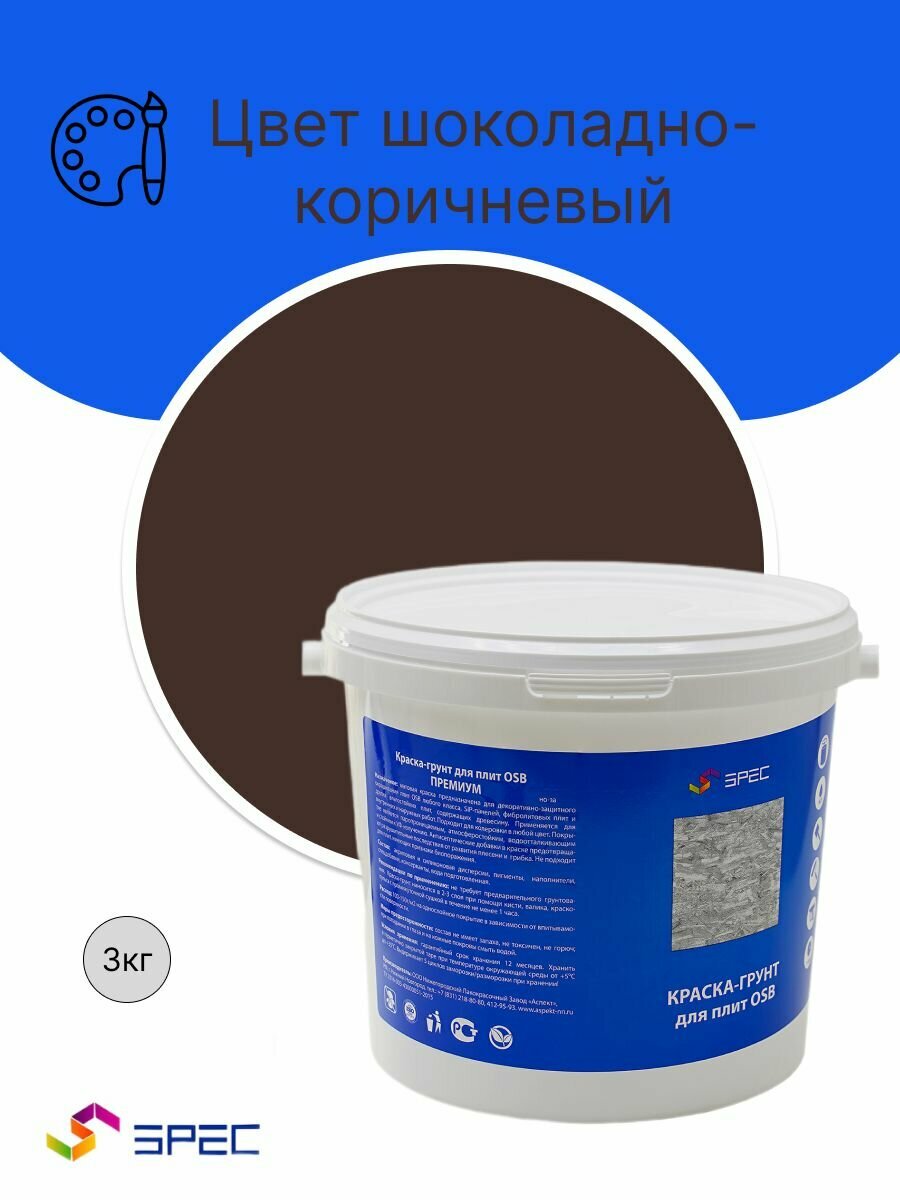 Краска-Грунт Премиум для OSB плит Акриловая SPEC/ ОСБ/ матовое покрытие/ шоколадно-коричневый/ 3кг интересное: