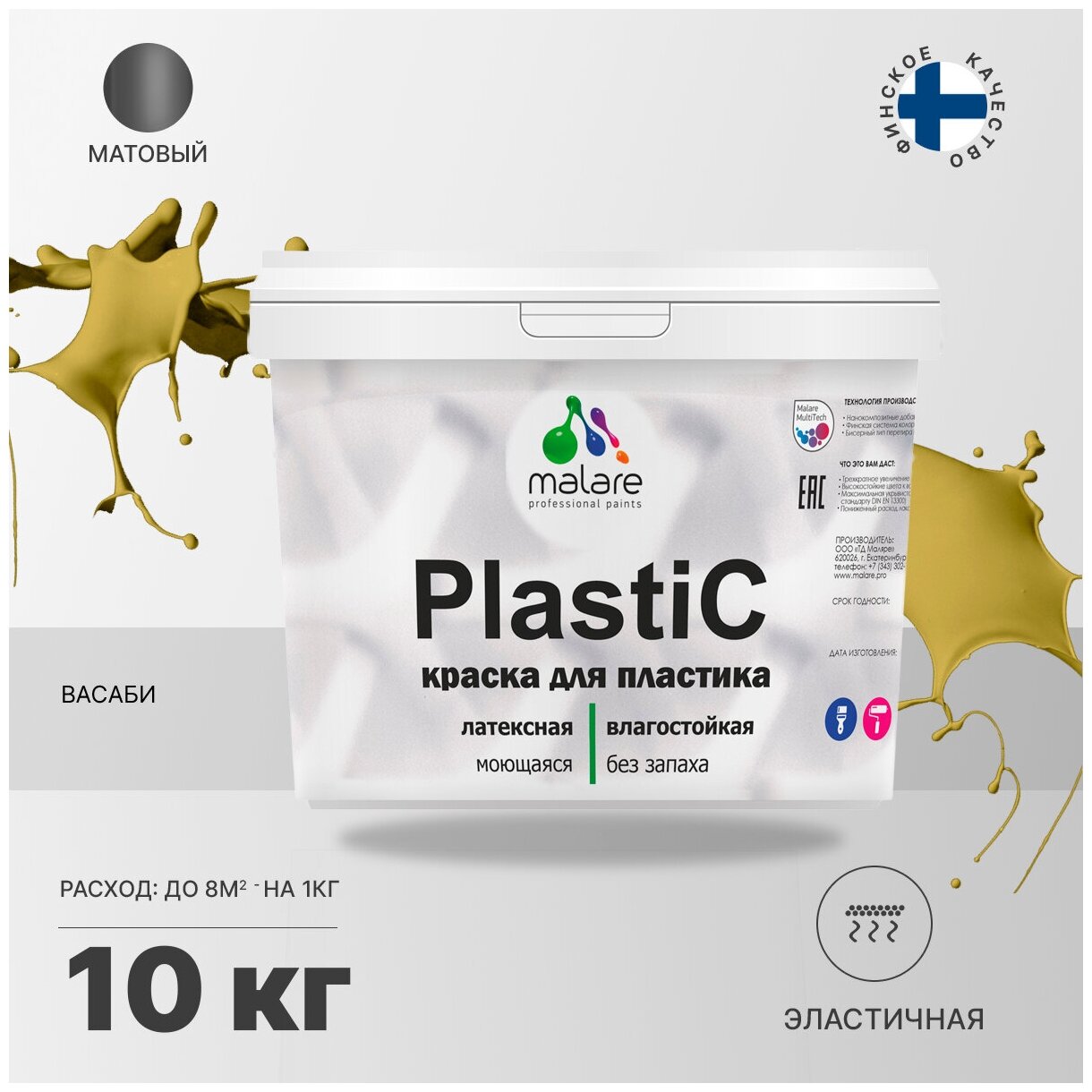 Купить Краска Malare PlastiC для пластика, подоконников, откосов, сайдинга, ПВХ, быстросохнущая, без запаха, матовая, васаби 10 кг.