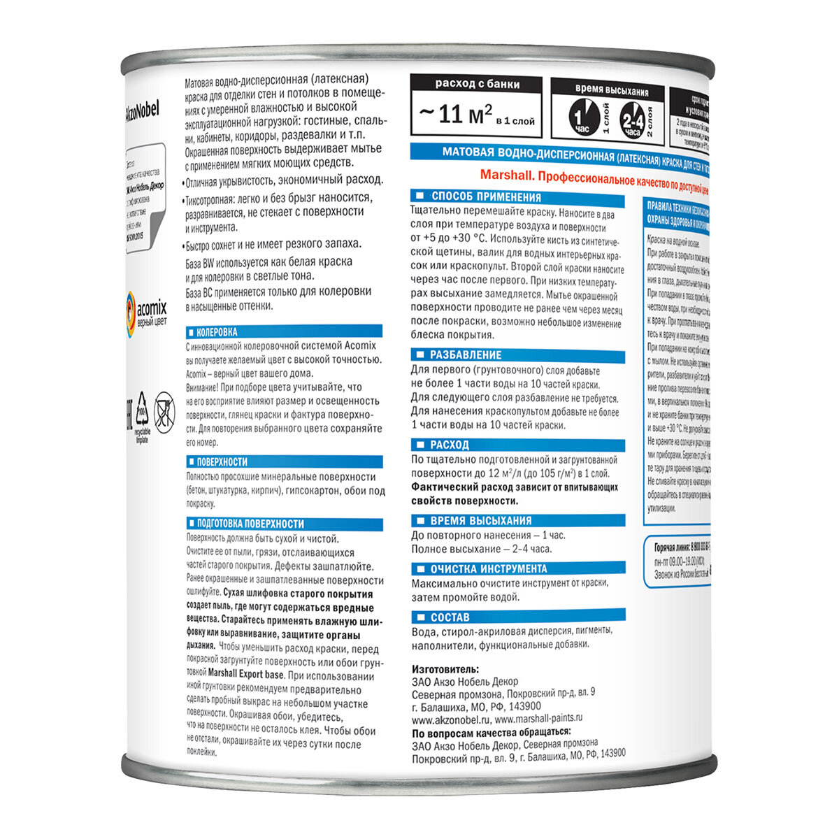 СохранитьMARSHALL EXPORT 7 особо прочная краска латексная для стен и потолков, матовая, база BC (4,5л) интересное: