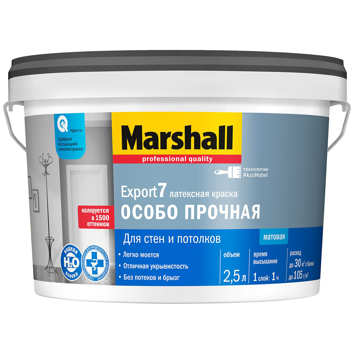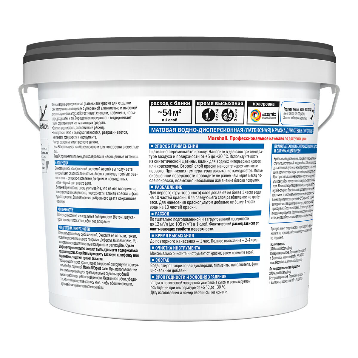 Краска Marshall Export 7 особо прочная, латексная, глубокоматовое покрытие 4.5л