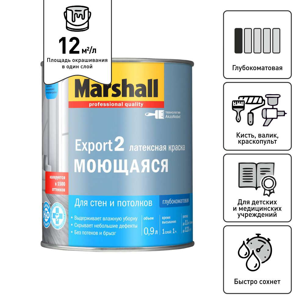 Краска Marshall Export 7 особо прочная, латексная, глубокоматовое покрытие 9 л