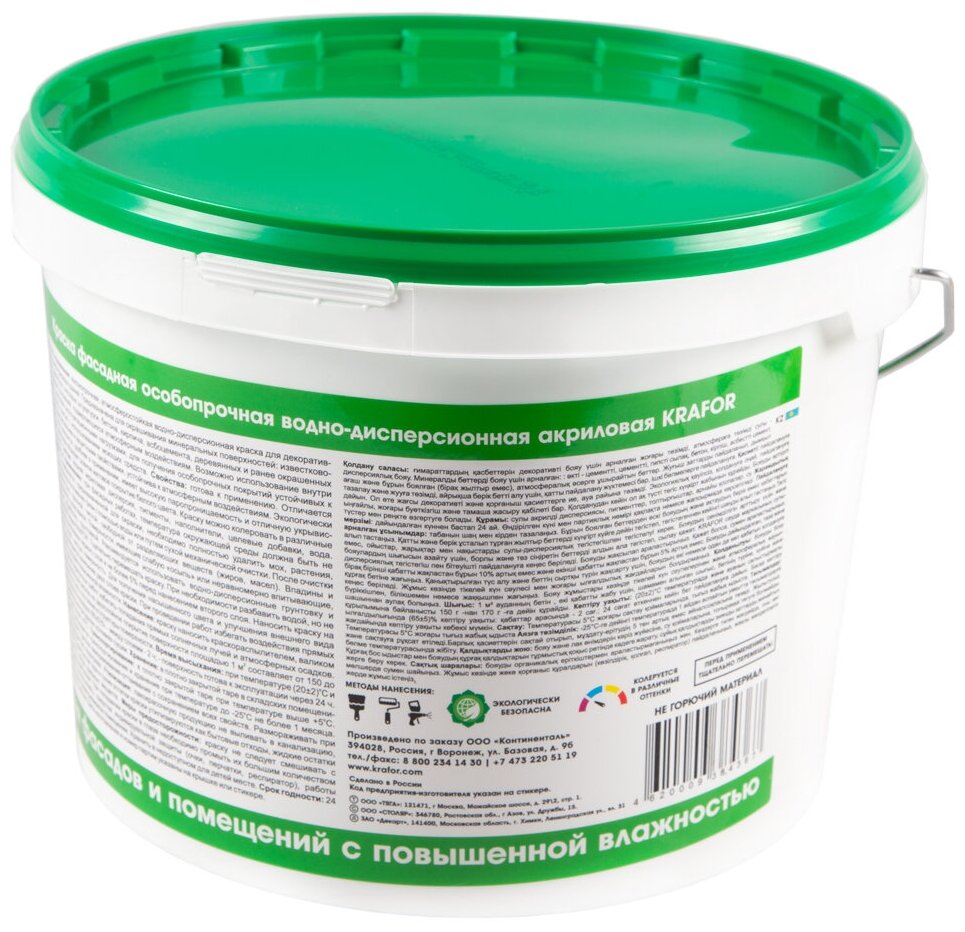 Краска водно-дисперсионная фасадная особопрочная Krafor, 6,5 кг, белая