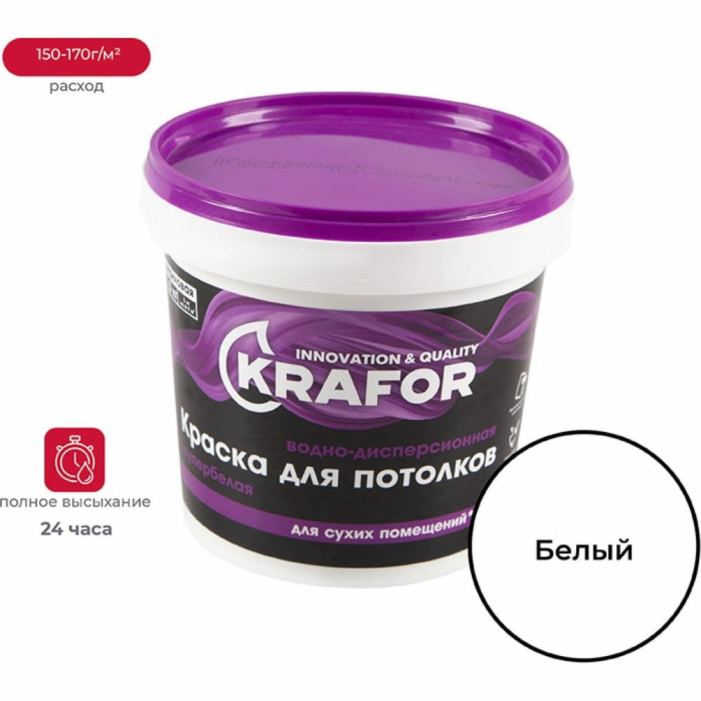 Краска водно-дисперсионная для потолков Krafor , матовая, 1,5 кг, супербелая