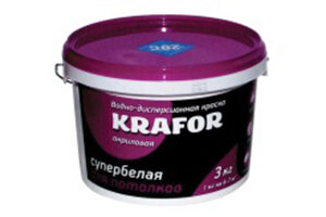 Краска для потолков супербелая водно-дисперсионная акриловая Krafor (3 кг)