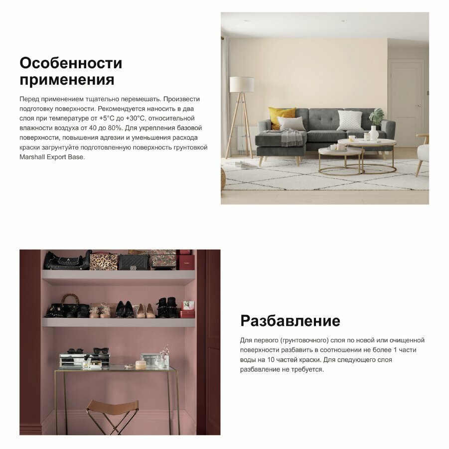 СохранитьMarshall Export 2 Моющаяся краска интерьерная (белая, глубокоматовая, база BW, 9 л) интересное: