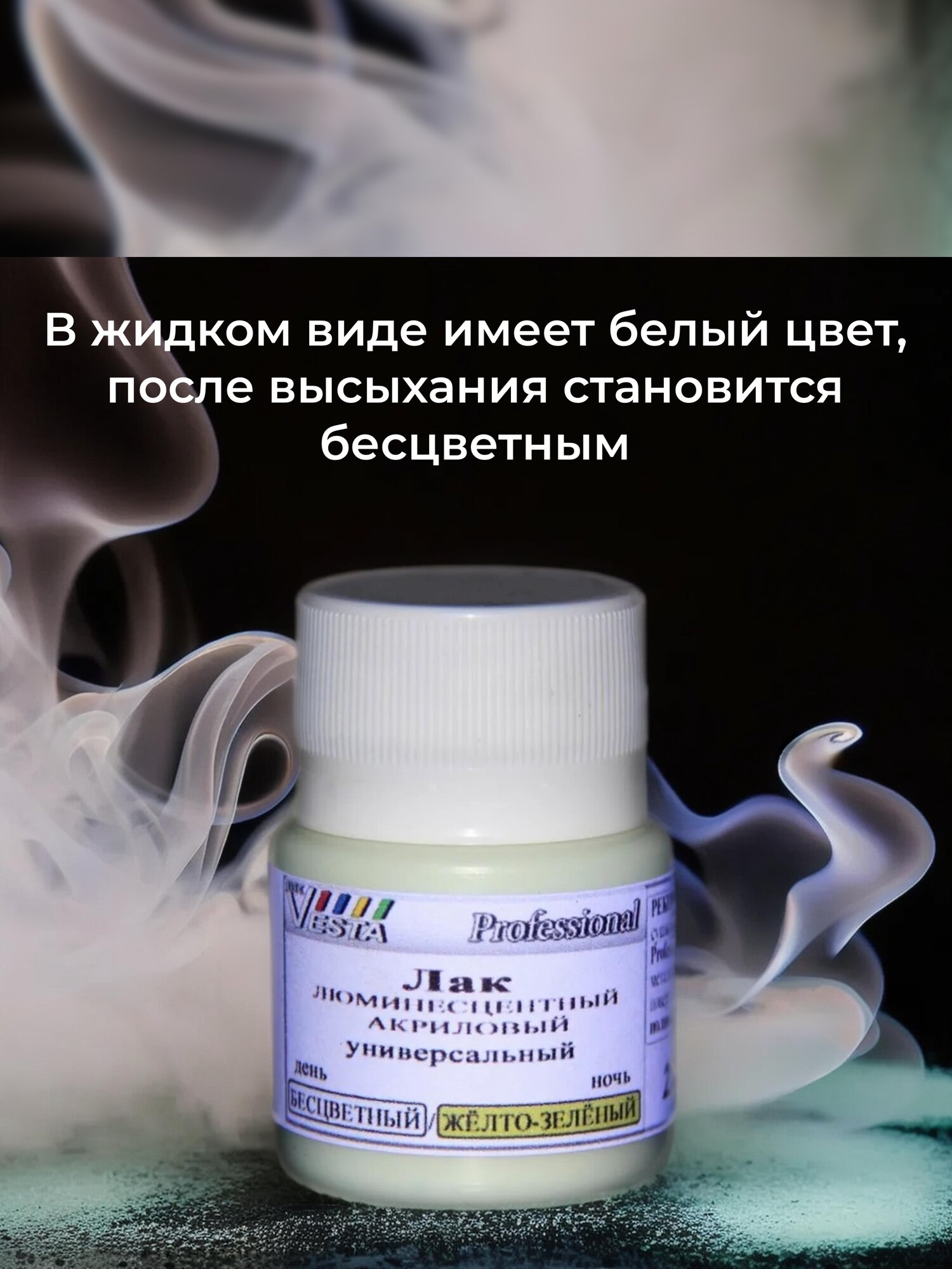 Лак люминесцентный "VESTA PROFESSIONAL" бесцветный / желто-зеленый (день / ночь) - 30 мл