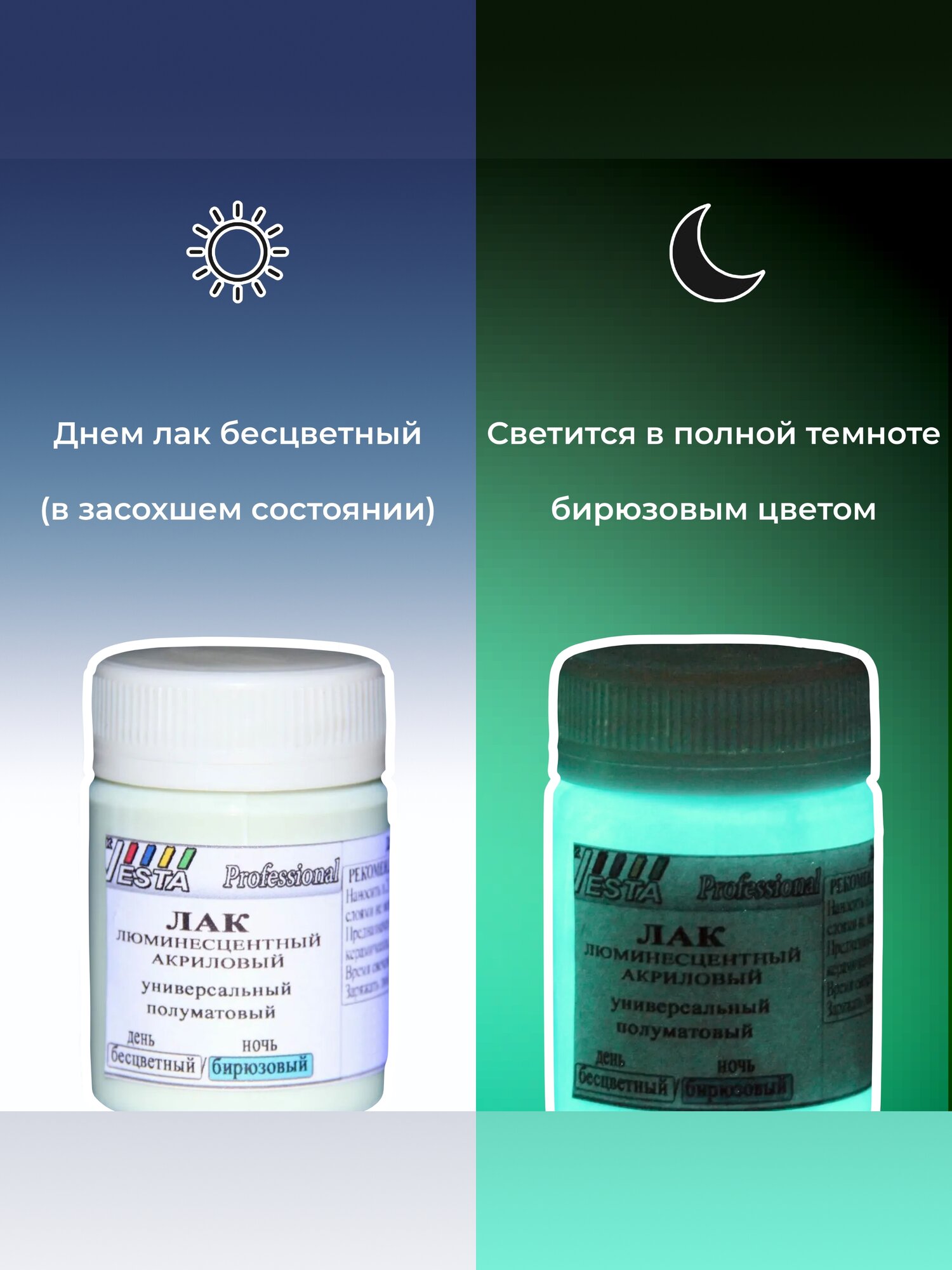 Лак люминесцентный "VESTA PROFESSIONAL" бесцветный / бирюзовый (день / ночь) - 100 мл