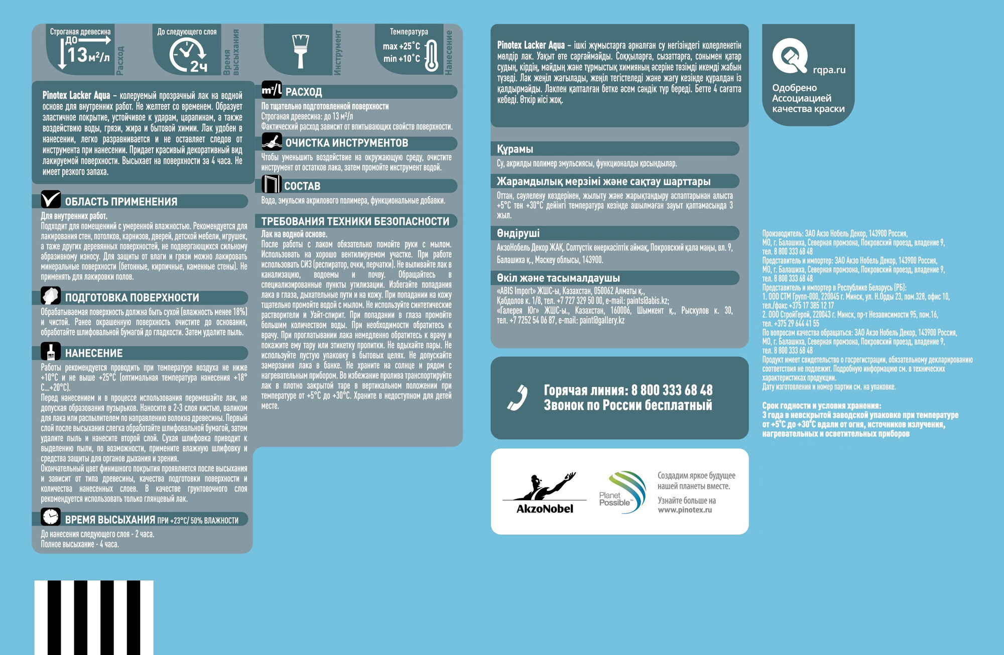 | Дополнительная информация | Лак для стен на водной основе Pinotex Lacker Aqua 10 цвет прозрачный матовый 2.7 л |