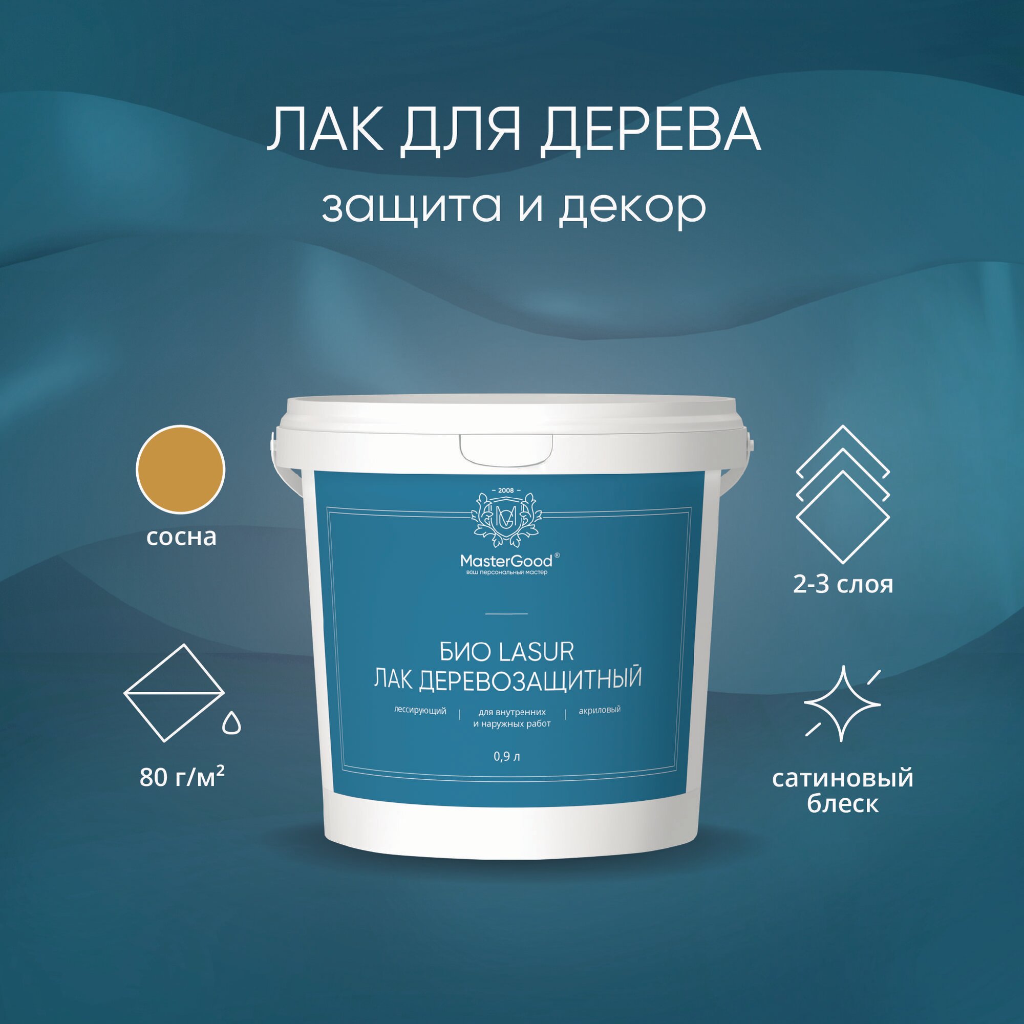 Лак декоративный лессирующий деревозащитный акриловый Master Good Bio Lasur (0,9л) груша