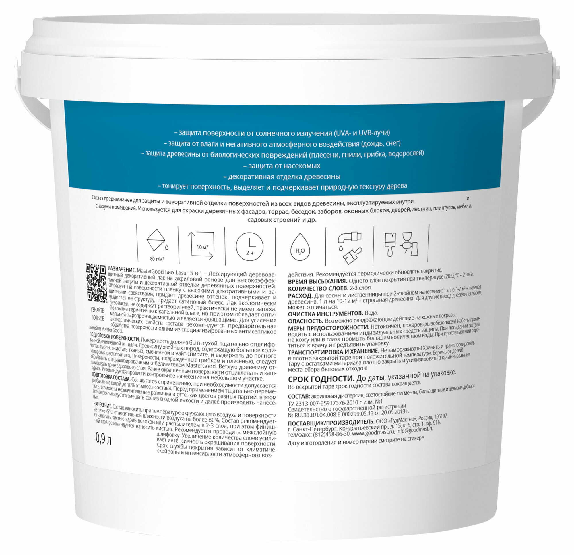Лак декоративный лессирующий деревозащитный акриловый Master Good Bio Lasur (0,9л) бесцветный