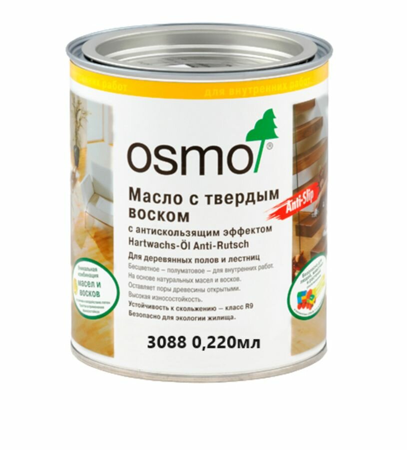 Масло с твердым воском с антискользящим эффектом OSMO 3088, бесцветное, полуматовое, 0,220мл