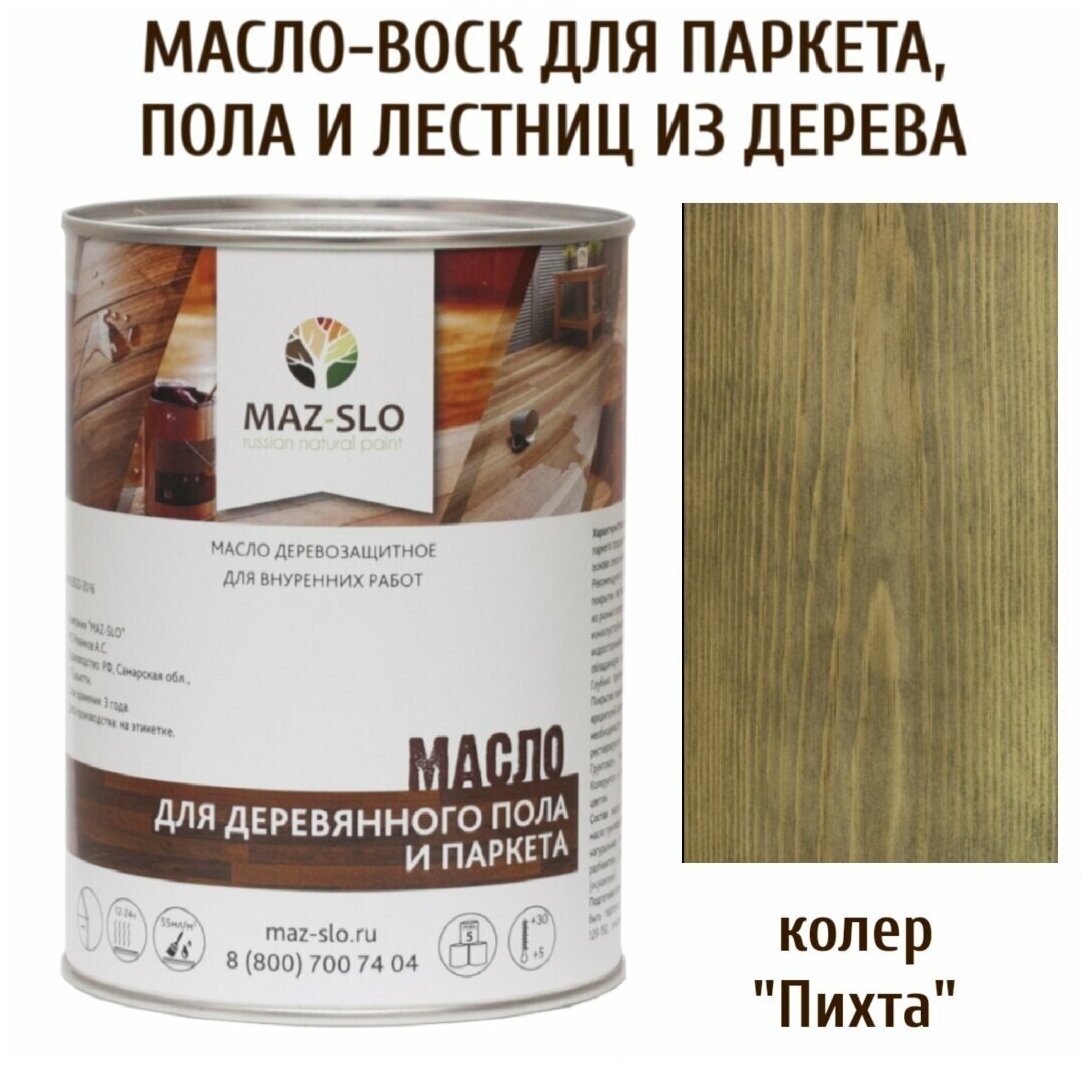 Паркетное масло-воск для пола и лестниц из дерева MAZ-SLO, цвет "Пепел", 1 литр, УФ-защита