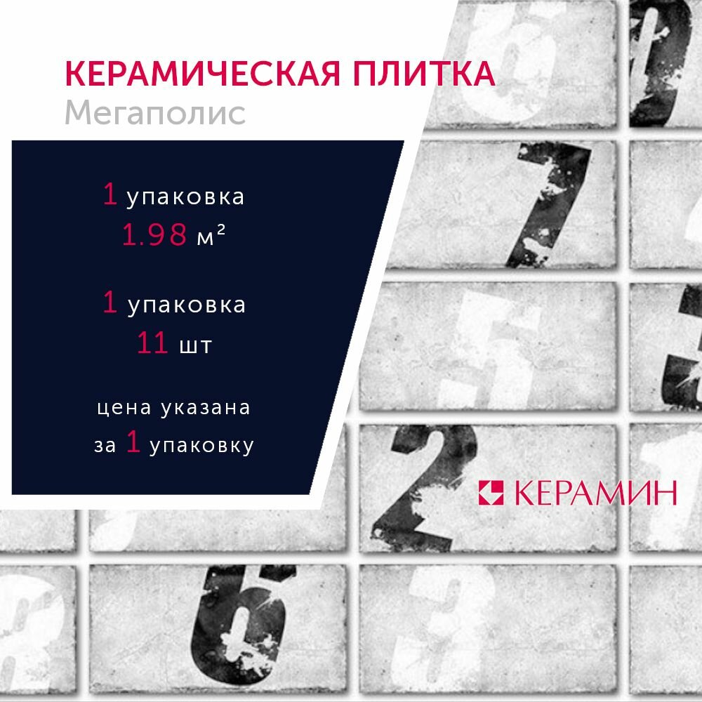Ниже Вы можете прочитать отзывы на Плитка керамическая Керамин Мегаполис 1С тип 1 цифры 30x60 см (11 шт. 1.98 м2), ознакомится с подробными характеристиками, посмотреть интересные обзоры и фотографии на Плитка керамическая Керамин Мегаполис 1С тип 1 цифры 30x60 см (11 шт. 1.98 м2).