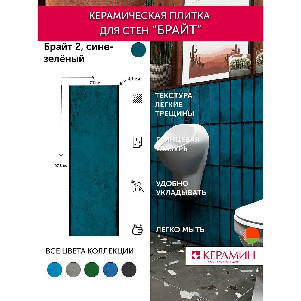 СохранитьПлитка керамическая для стен Керамин Брайт 2 сине-зелёный 275х77,5 мм 26 шт (0,55 м2) интересное: