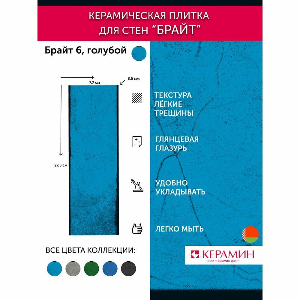Плитка керамическая для стен Керамин Брайт 5 синий 275х77,5 мм 26 шт (0,55 м2)