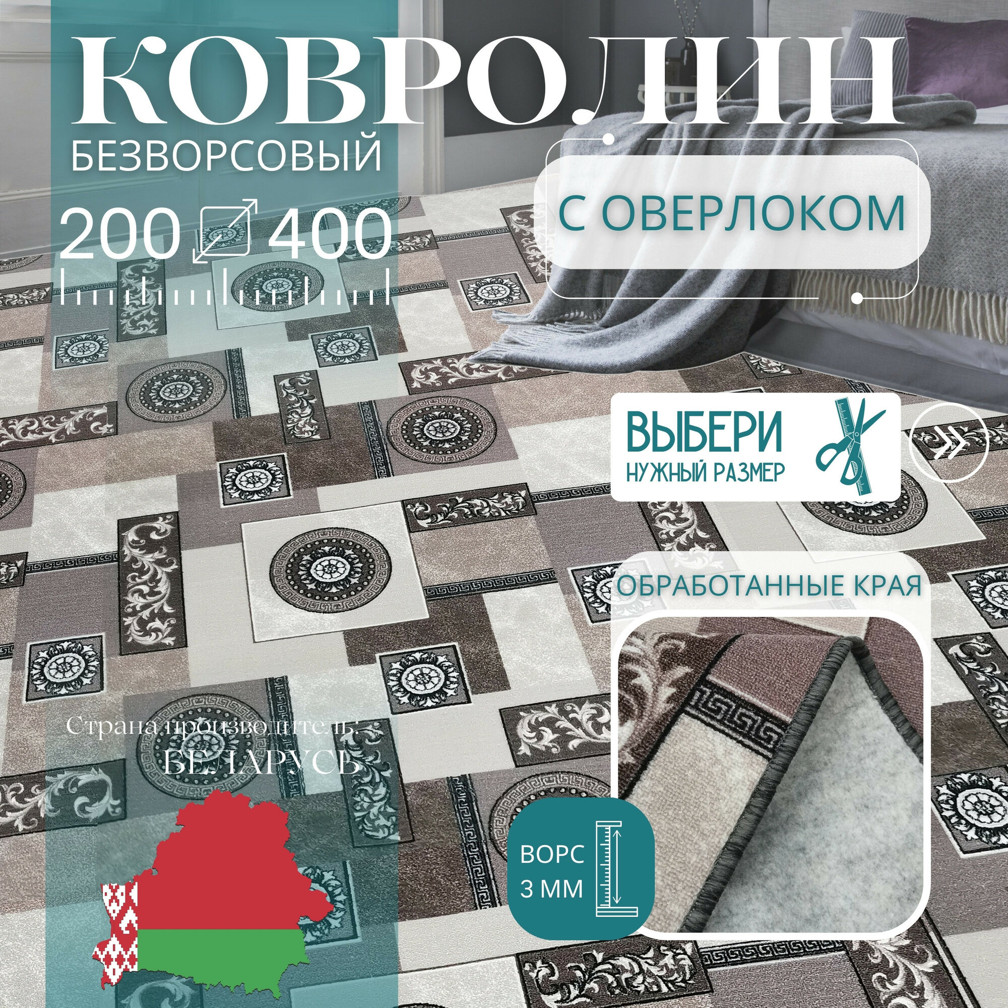 Ковролин метражом 2х4,25 м, без ворса "Пэчворк", бежево-коричневый с оверлоком