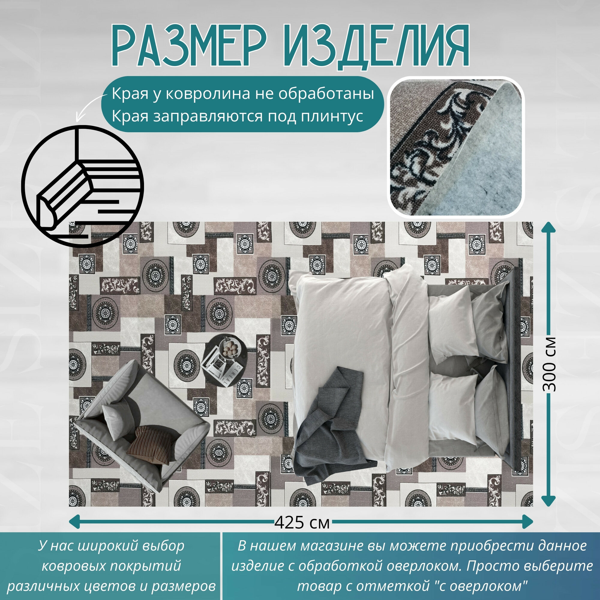 СохранитьКовролин метражом 3х4,25 м, без ворса "Пэчворк", бежево-коричневый без оверлока интересное:
