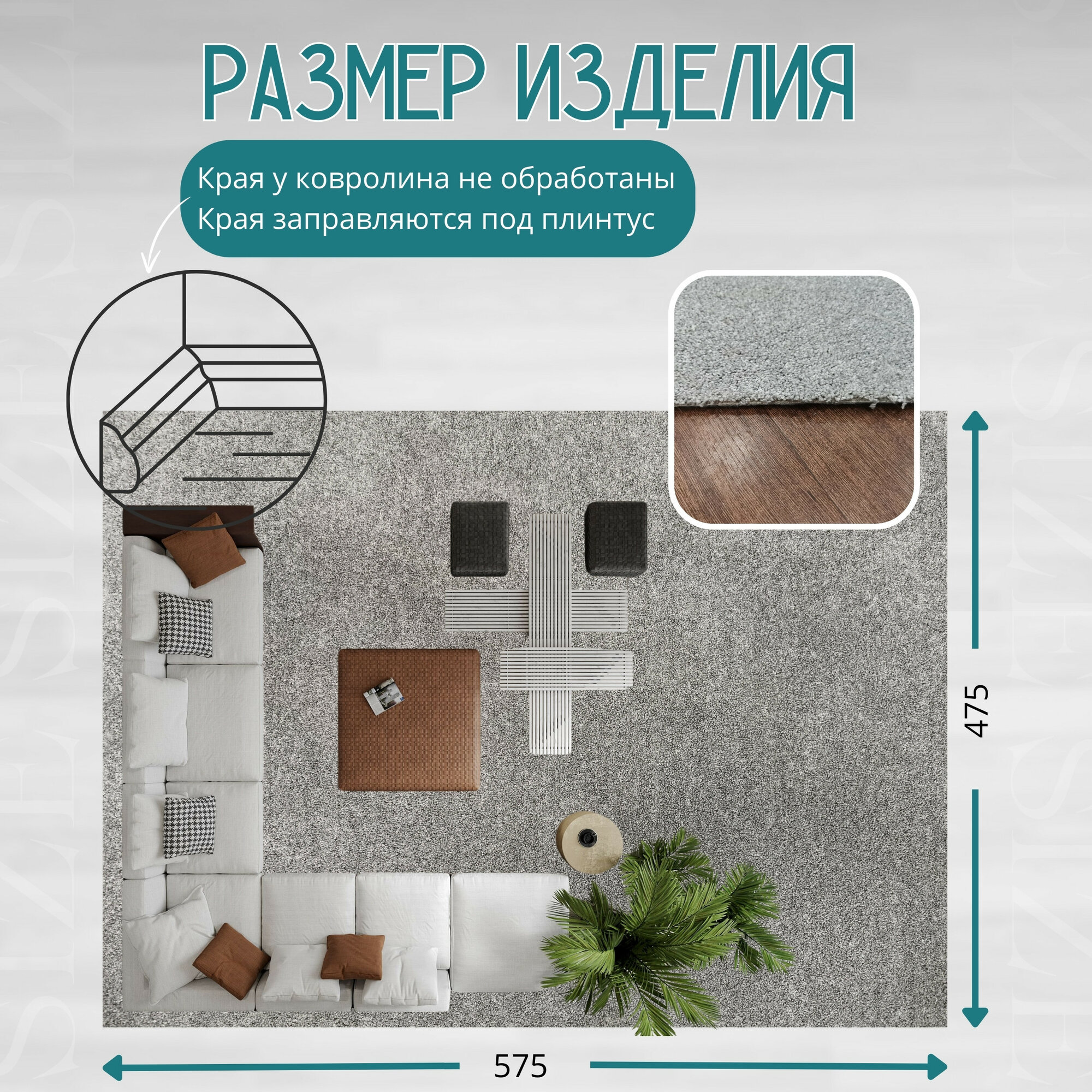 СохранитьКовролин метражом 4,75х5,75 м, без оверлока "Линеар", серый интересное: