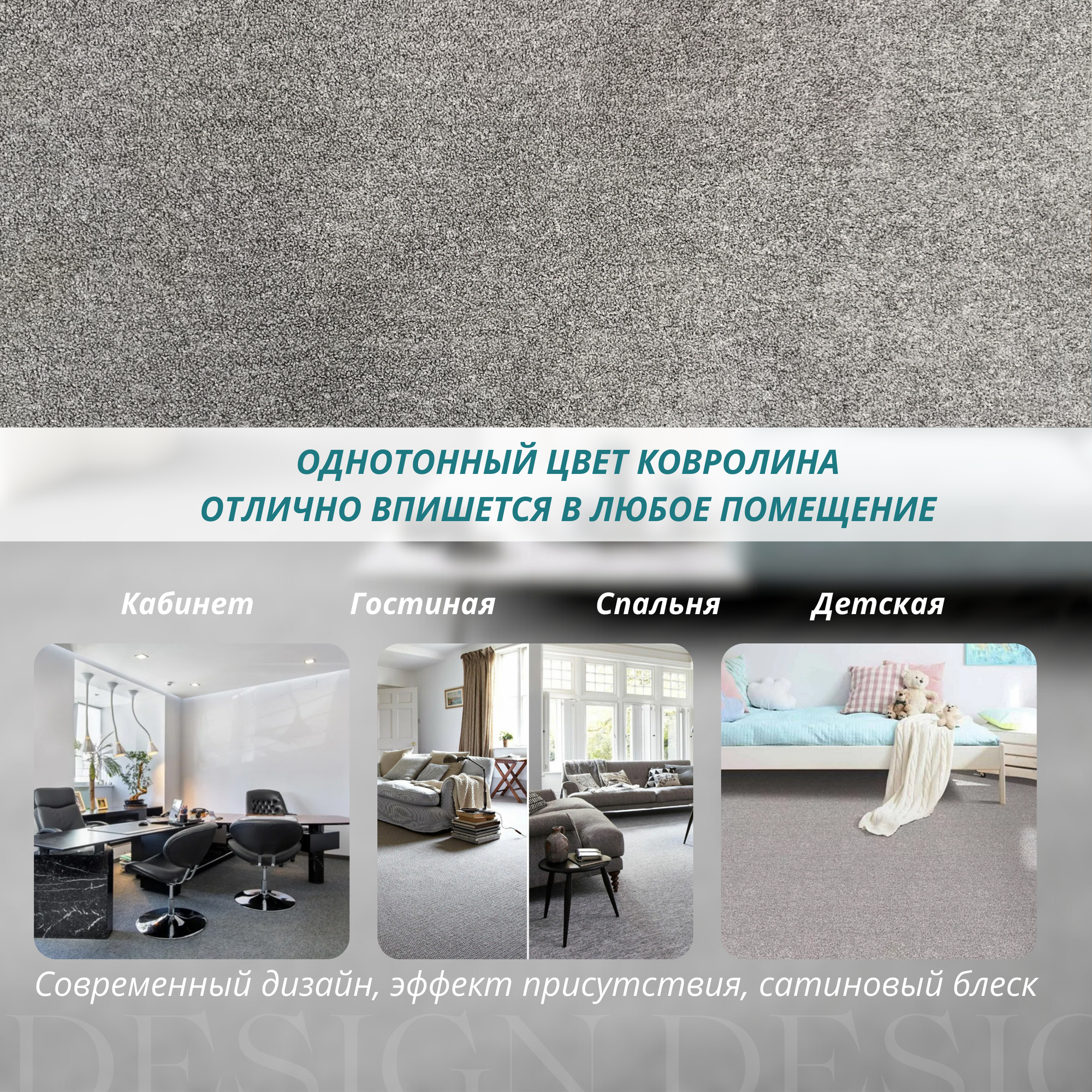 Ковролин метражом 3,5х4,5 м, без оверлока "Линеар", серый