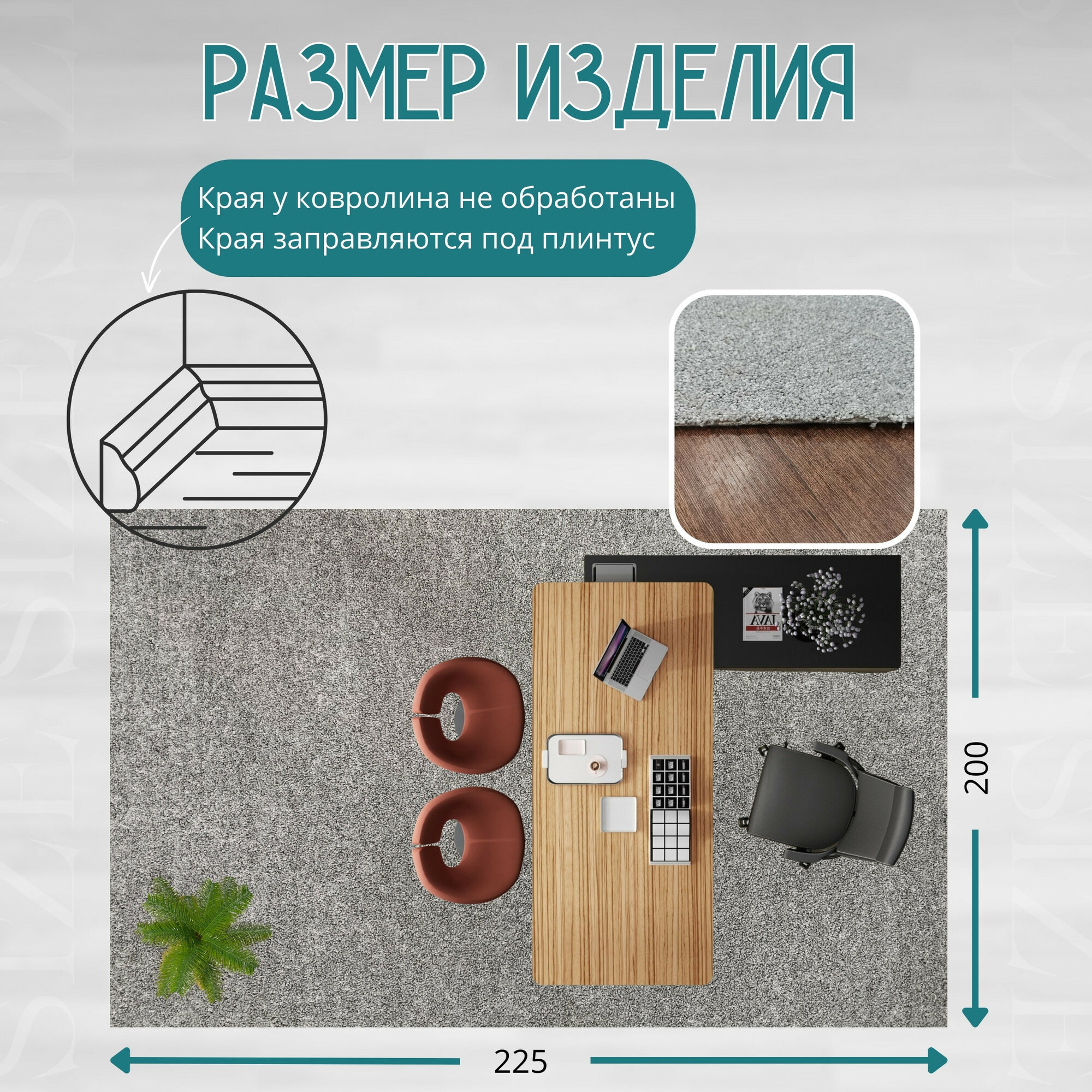 СохранитьКовролин метражом 2х2,25 м, без оверлока "Линеар", серый интересное: