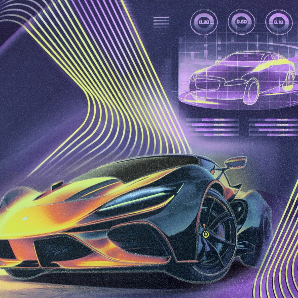 Купить Обои в подростковую комнату светящиеся виниловые гоночные машины105 тачки УФ-свечение 1,06*10м, метровые для мальчика в бар в клуб фиолетовые