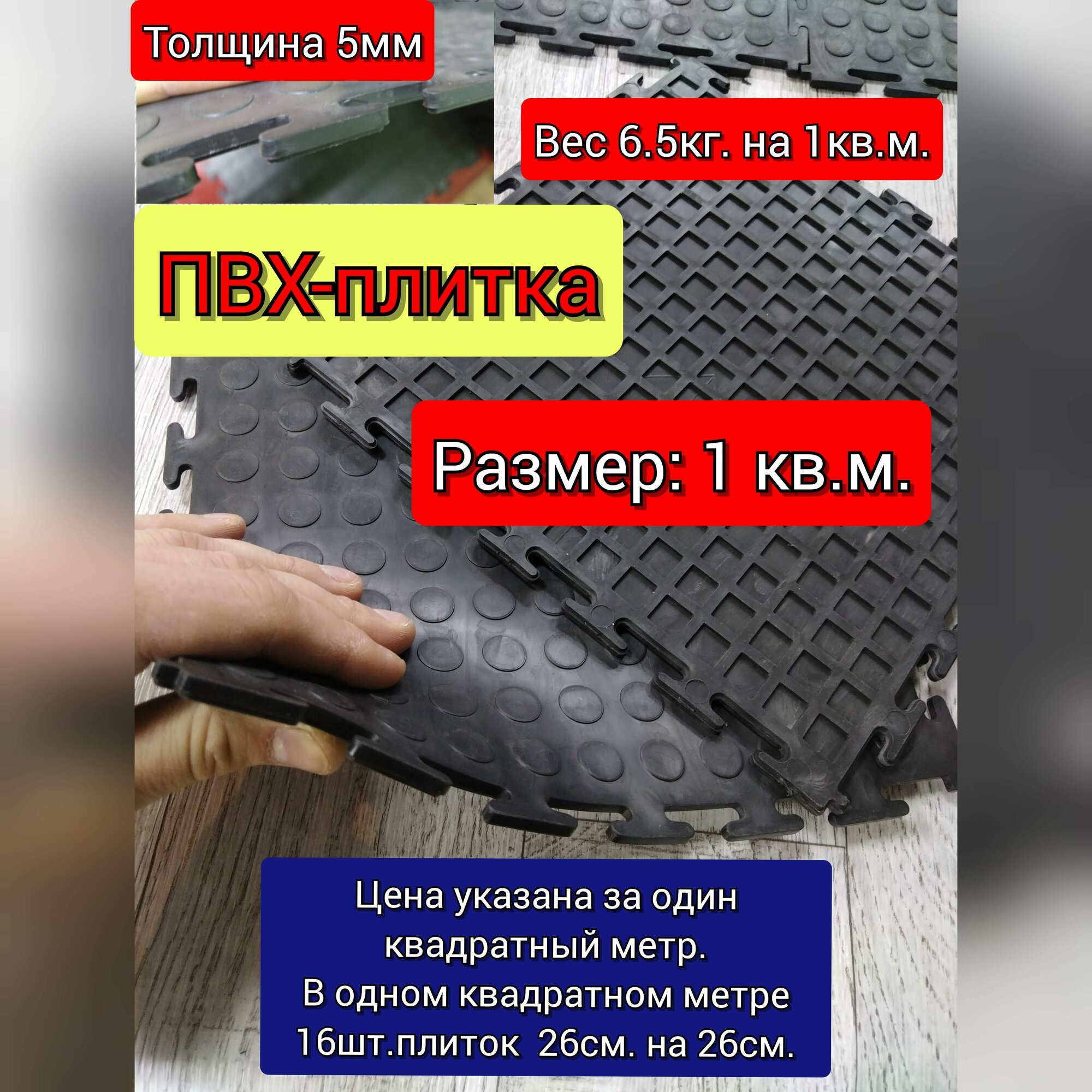 ПВХ плитка для пола 1кв.м(толщина 5мм. цвет черный)в гараж,склад, автосервис интересное: