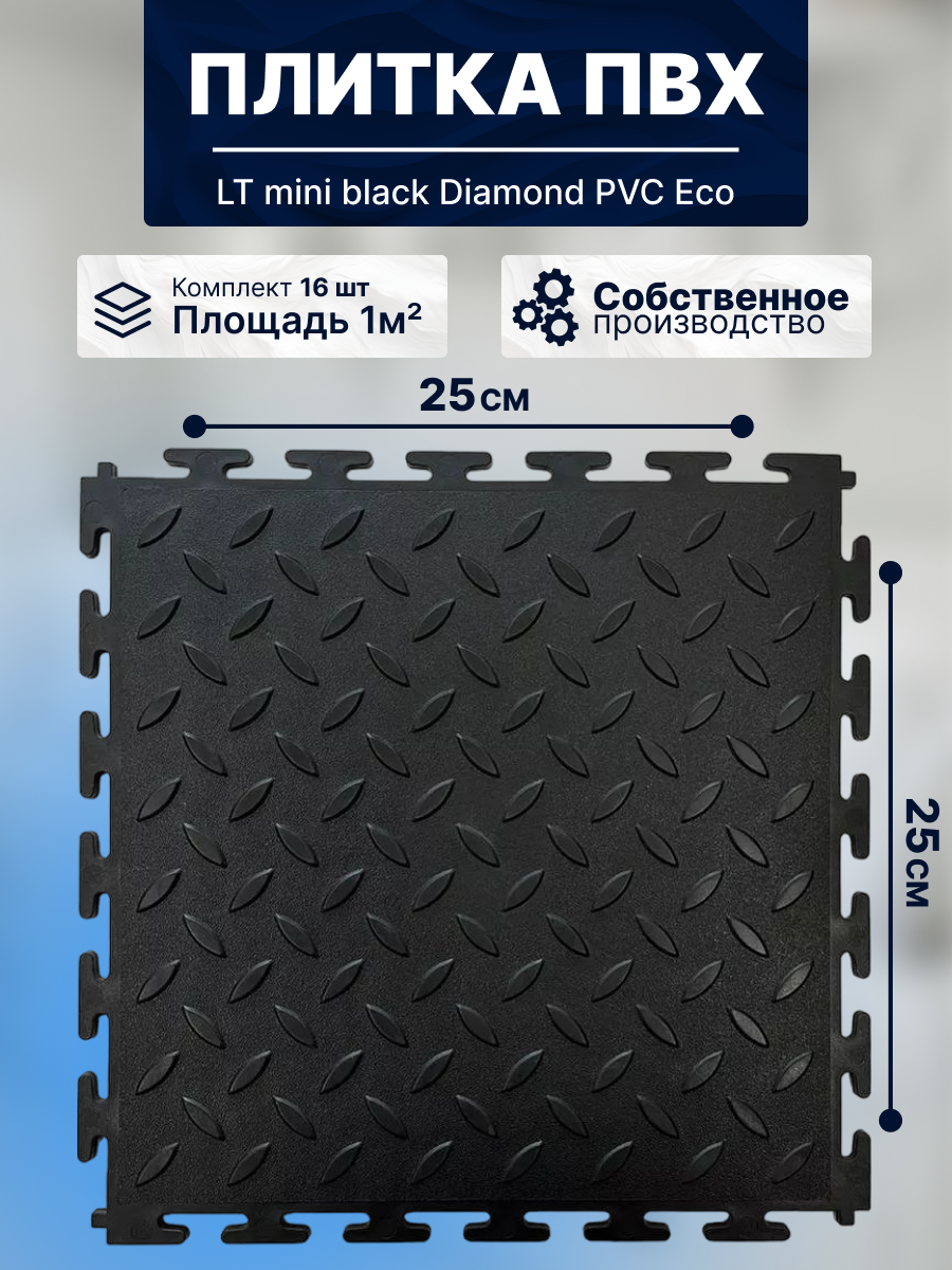 Плитка ПВХ модульная на пол LT mini black Diamond PVC Eco 250X250X5мм 43 класс интересное: