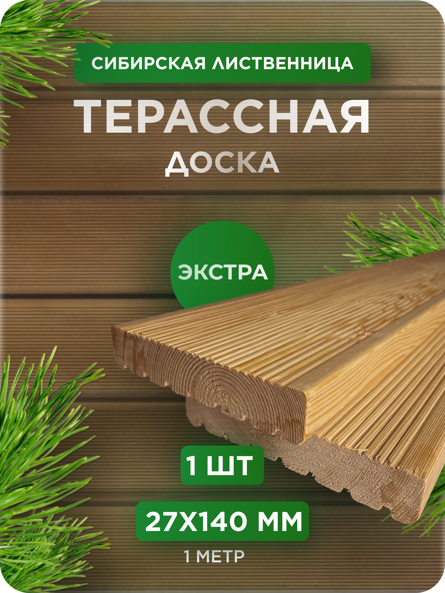 Купить Террасная доска из лиственницы сорт Экстра 27Х140Х1000 мм - 1 шт