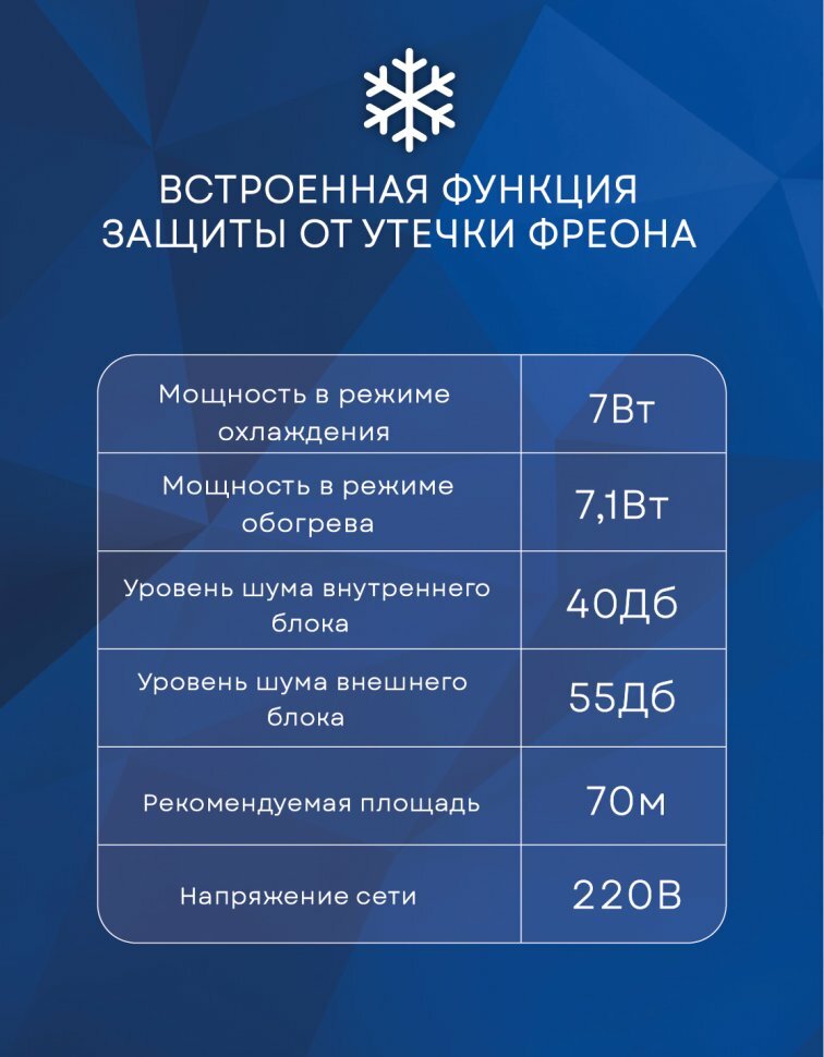 | Мощность охлаждения (1-й внутренний блок) | 7000 Вт |