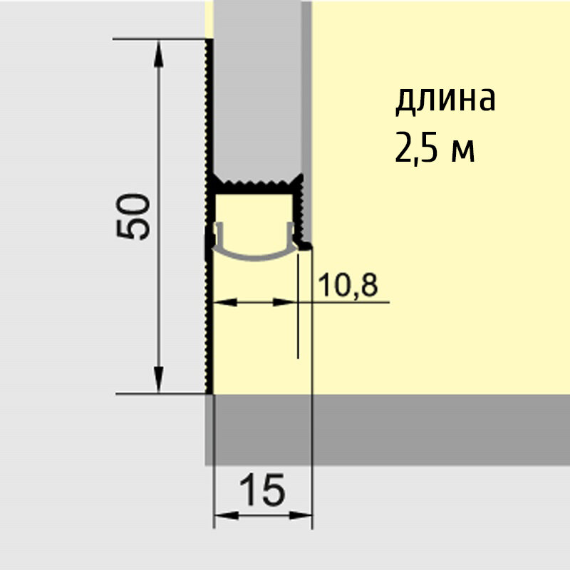 Теневой плинтус с подсветкой скрытого монтажа для пола Русский профиль 50х15 мм, длина 2,5 м, анод серебро матовый
