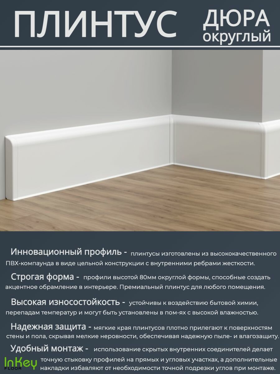 Плинтус для пола премиум IDEAL округлый белый 10 штук интересное: