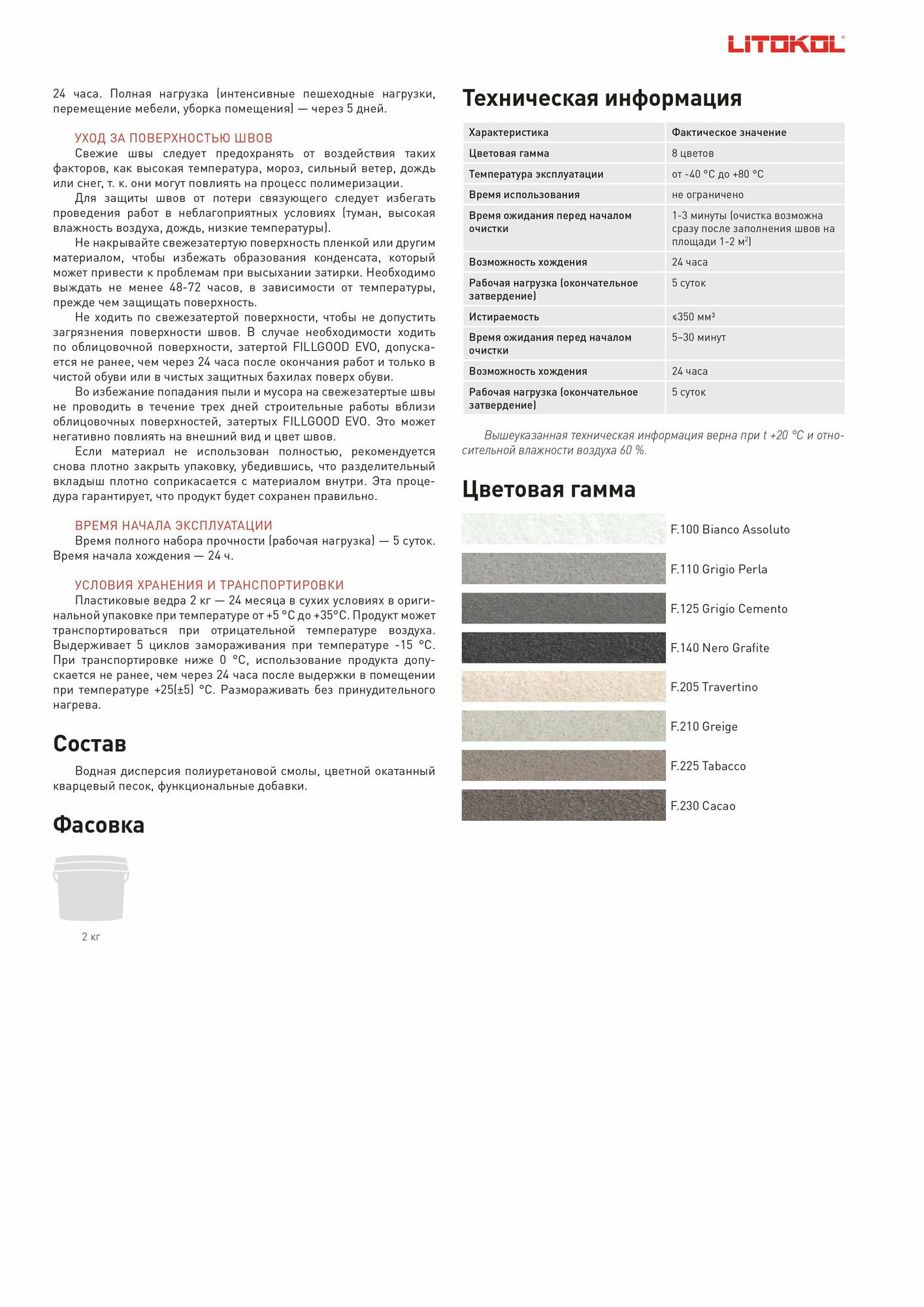 Затирка полиуретановая Litokol Fillgood Evo F225 цвет табачный 2 кг интересное: