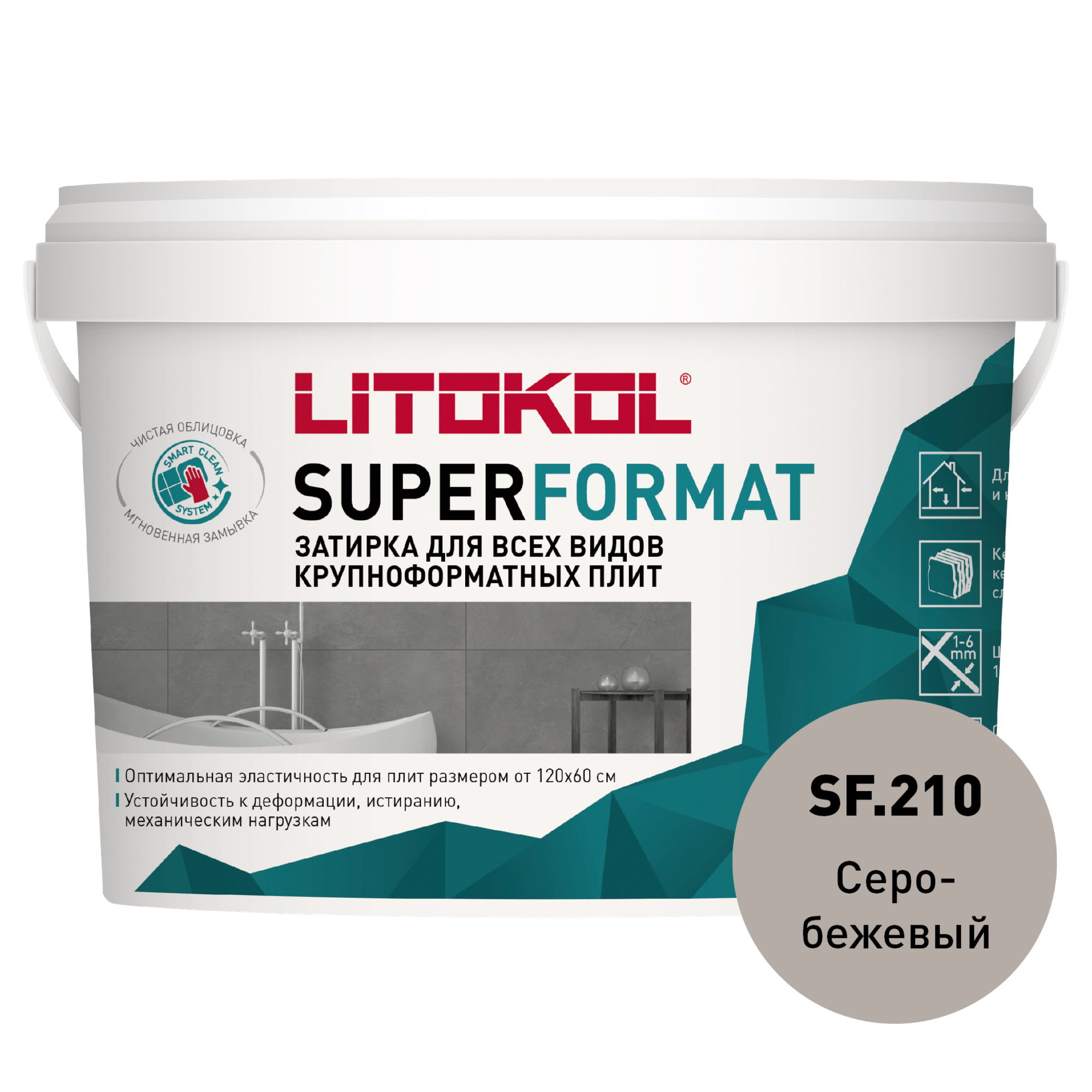 Купить Затирка готовая полиуретановая LITOKOL SUPERFORMAT для крупноформатных плит SF.210 Серо-бежевый 2 кг