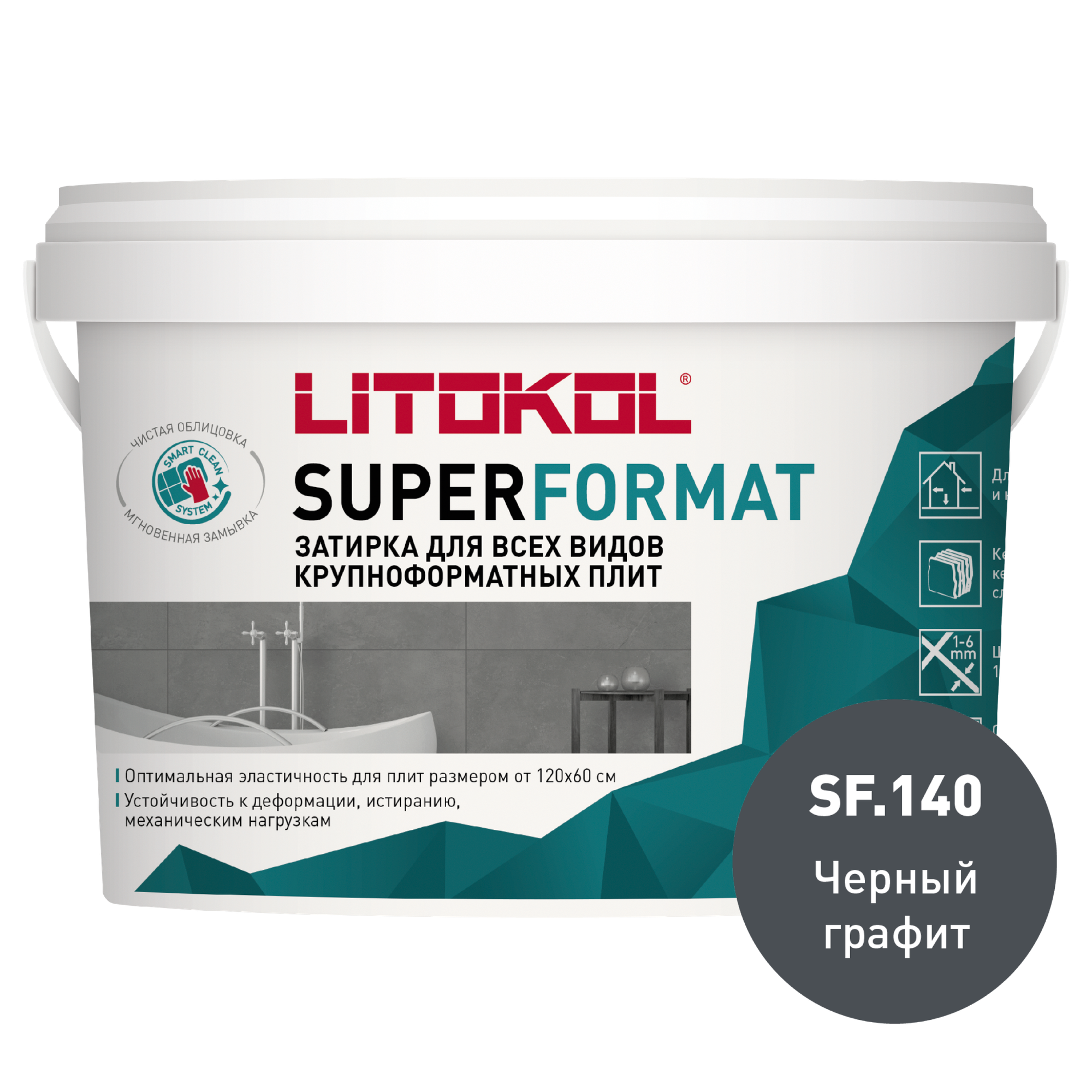 Купить Затирка готовая полиуретановая LITOKOL SUPERFORMAT для крупноформатных плит SF.140 Черный графит 2 кг