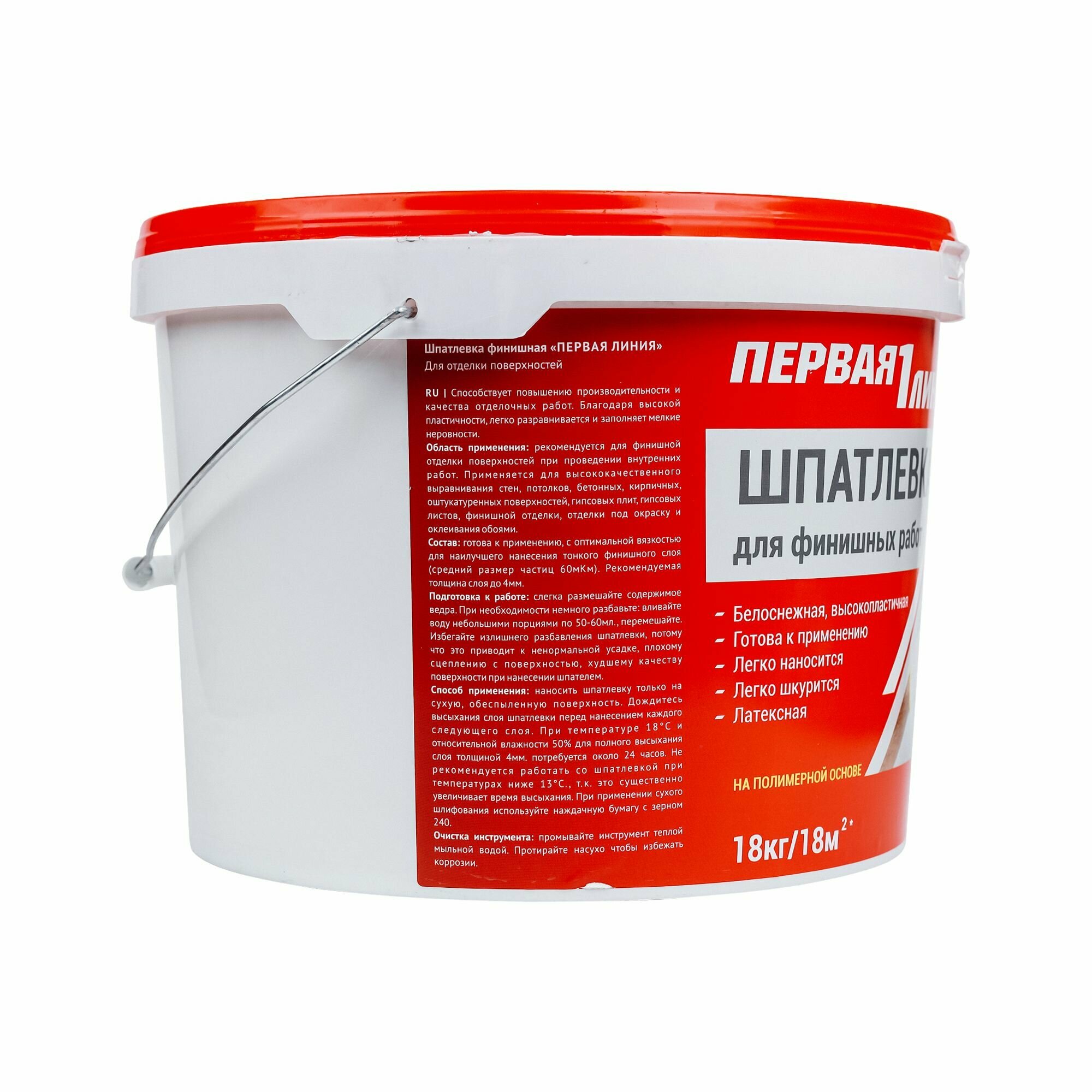 Купить Шпатлевка готовая финишная Первая линия латексная для внутренних работ белая 18 кг