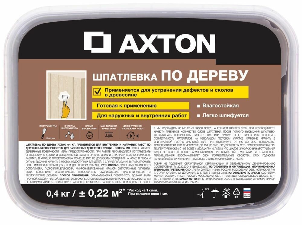| Дополнительная информация | Шпатлёвка Axton для дерева 0.4 кг хани |