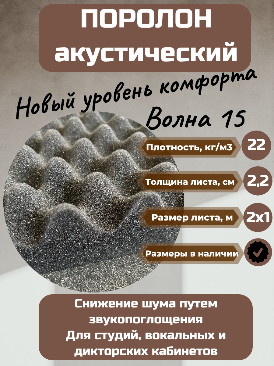 Ниже Вы можете прочитать отзывы на Поролон акустический Волна 15 SPG2236 2000*1000*22, ознакомится с подробными характеристиками, посмотреть интересные обзоры и фотографии на Поролон акустический Волна 15 SPG2236 2000*1000*22.