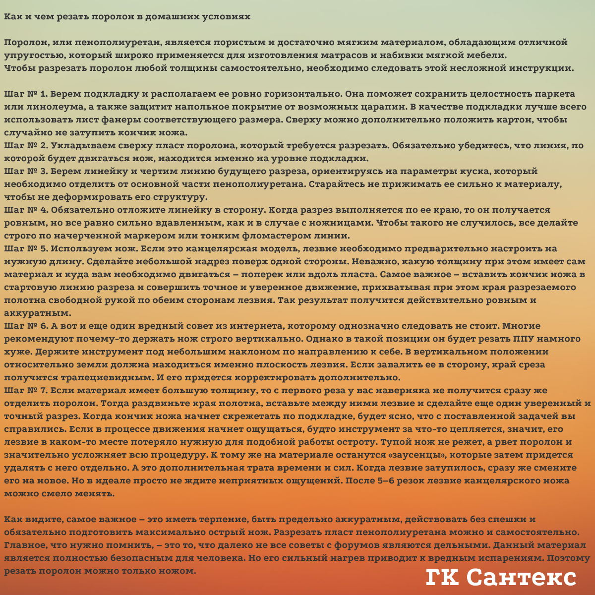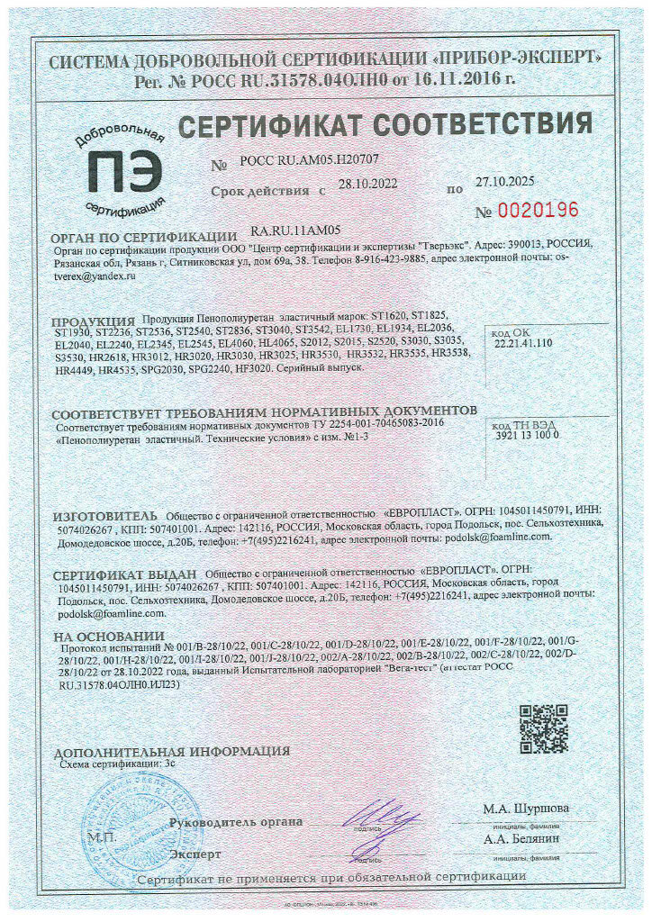 | Материал | эластичный пенополиуретан |