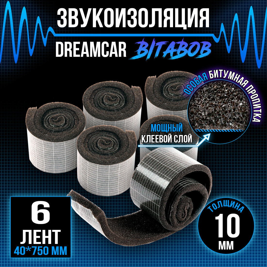 DreamCar Technology Звукоизоляция c битумной пропиткой DreamCar BitaBob 10мм лента 0.04х0.75м самоклеящаяся - 6 рулонов интересное: