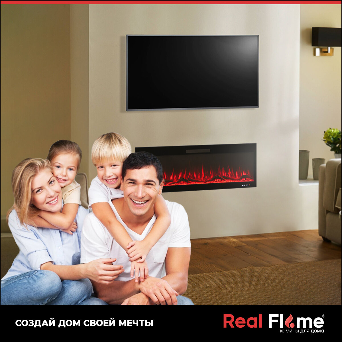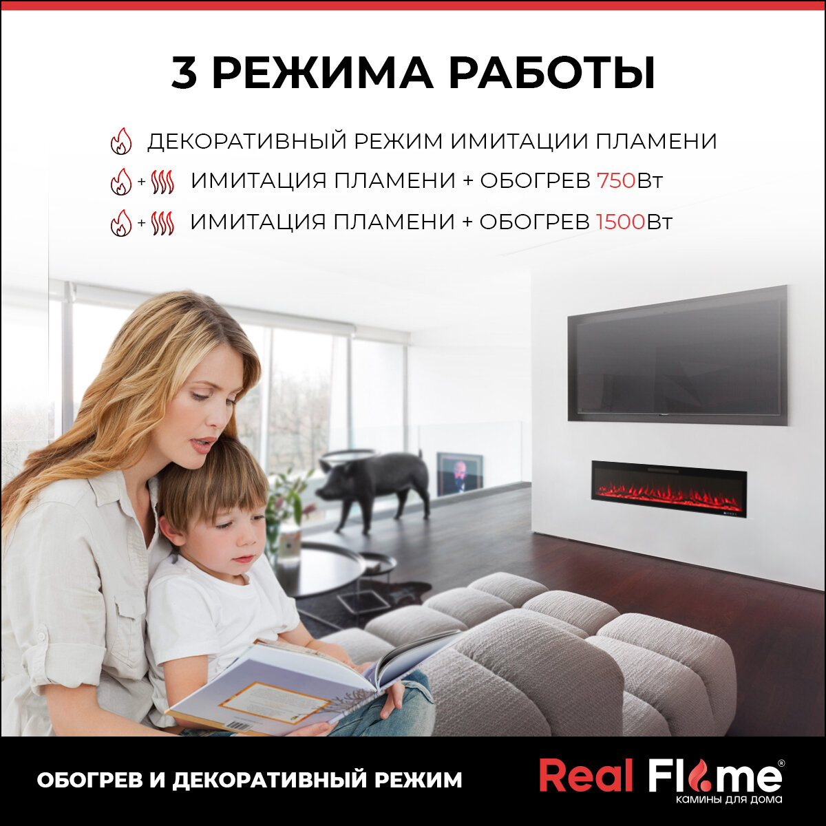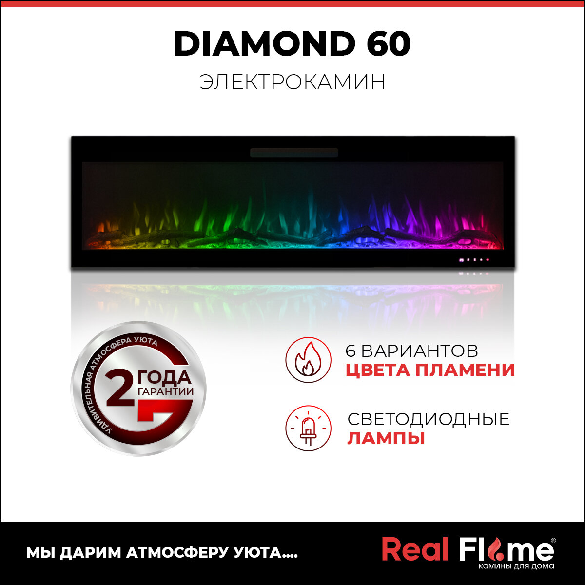 Линейный электроочаг RealFlame Diamond 42, муляж дрова и кристаллы, 10 цветов пламени и муляжа, обогрев, пульт ДУ (линейный электрический очаг)