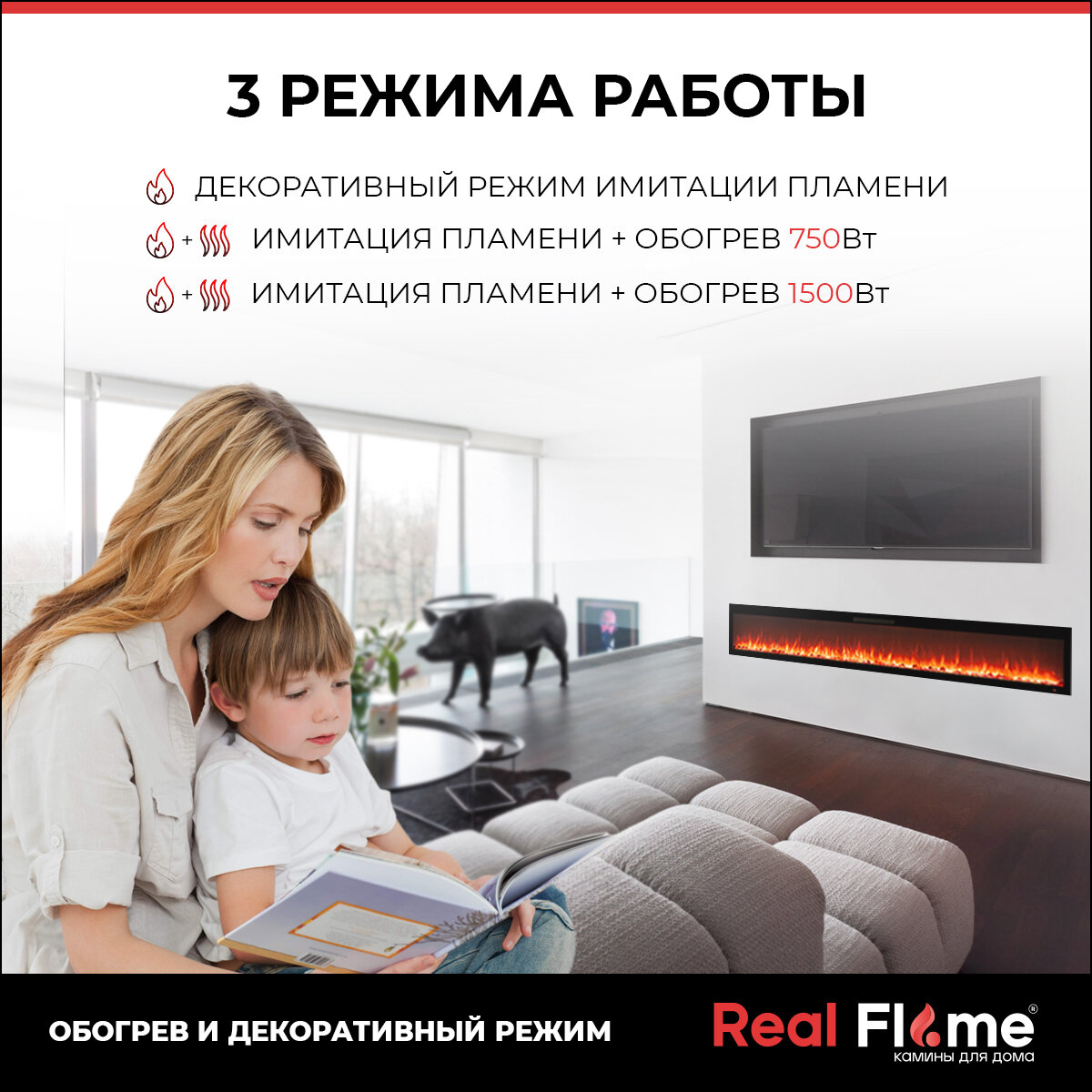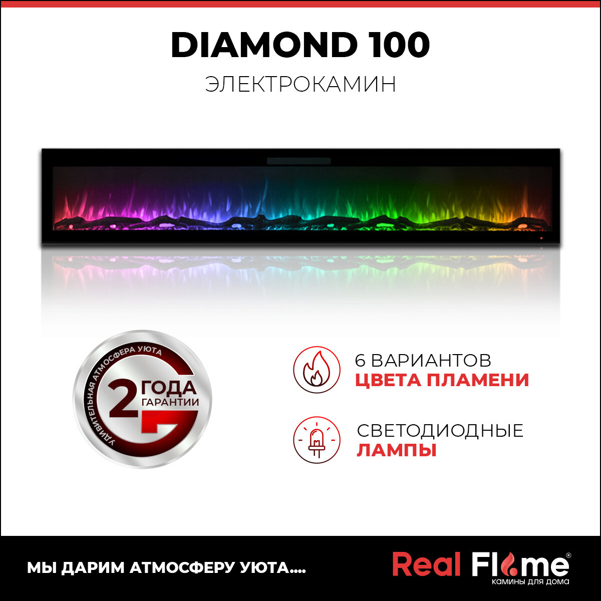 Линейный электроочаг RealFlame Diamond 42, муляж дрова и кристаллы, 10 цветов пламени и муляжа, обогрев, пульт ДУ (линейный электрический очаг)